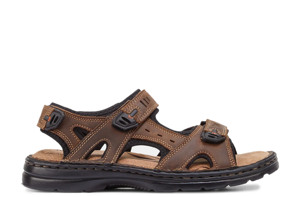 These sandals feature genuine oiled leather uppers and breathable mesh lining with moisture-wicking properties.