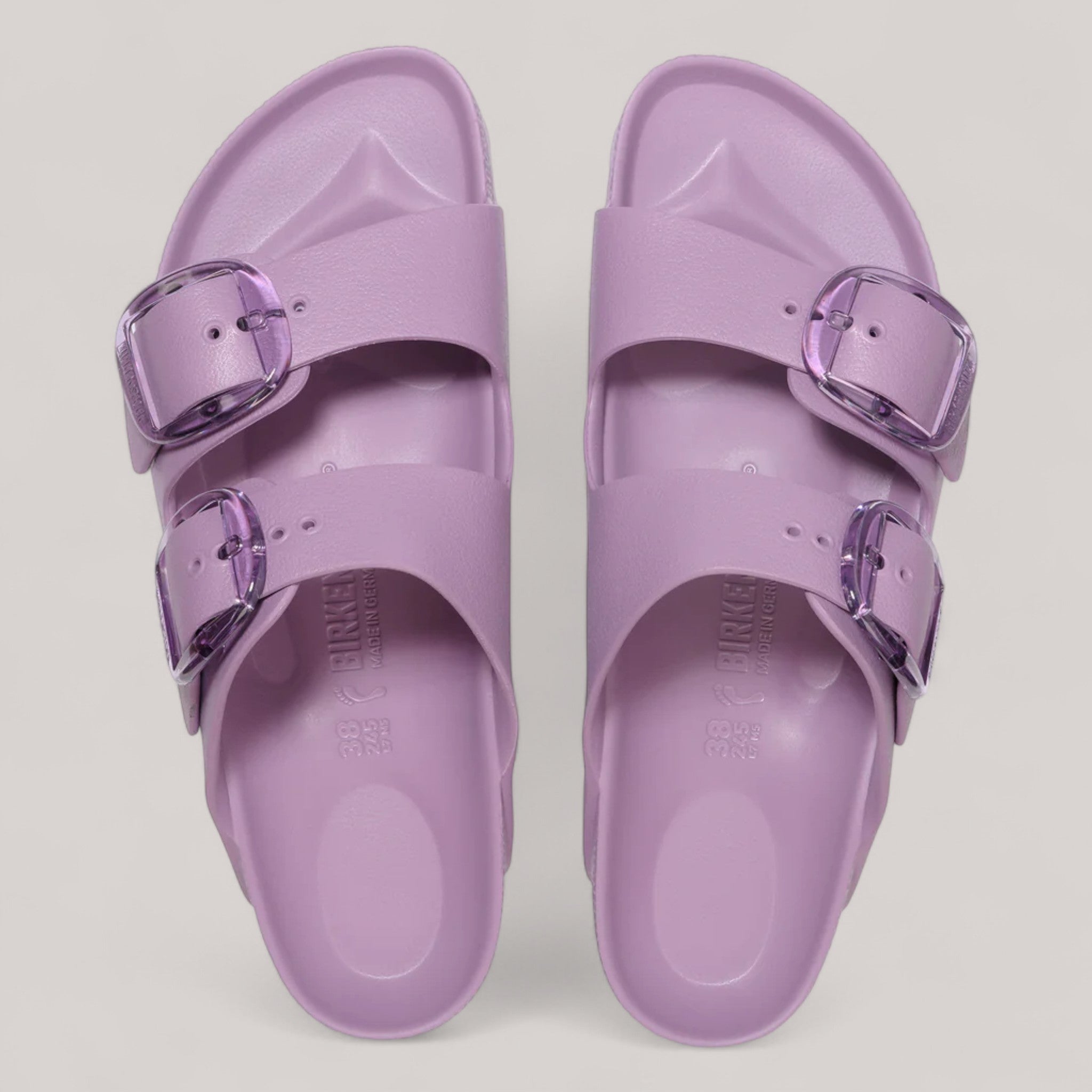 The contoured footbed delivers the signature Birkenstock support, while the oversized synthetic Big Buckle adds a bold, minimalist touch. Durable, easy to clean, and endlessly comfortable, the Arizona EVA Big Buckle continues to be a staple in wardrobes worldwide.