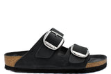 The iconic Birkenstock Arizona gets a bold update with the Big Buckle edition, featuring oversized pin buckles for a refined yet minimalist look. Crafted from thick nubuck leather with an open-selvage finish, it combines premium materials with timeless style. The anatomically shaped cork-latex footbed, lined in soft suede, offers personalised comfort and support, while the lightweight EVA sole ensures flexibility and durability. Made in Germany.