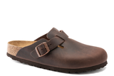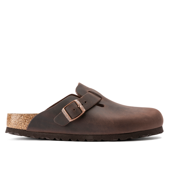 The Birkenstock Boston is a timeless classic that combines style and comfort with effortless ease. Designed for year-round wear, this clog features an oiled leather upper with a heritage-inspired finish, making each pair uniquely yours. The adjustable strap ensures a secure fit, while the anatomically shaped cork-latex footbed and roomy toe box deliver exceptional comfort. Versatile and iconic, the Boston is a must-have for every season. Please note: Colour variation in Habana Brown may vary significantly due to the nature of the leather.