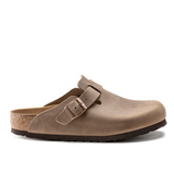 The Birkenstock Boston is a timeless classic that combines style and comfort with effortless ease. Designed for year-round wear, this clog features an oiled leather upper with a heritage-inspired finish, making each pair uniquely yours. The adjustable strap ensures a secure fit, while the anatomically shaped cork-latex footbed and roomy toe box deliver exceptional comfort. Versatile and iconic, the Boston is a must-have for every season. Please note: Colour variation in Tobacco Brown may vary significantly due to the nature of the leather.