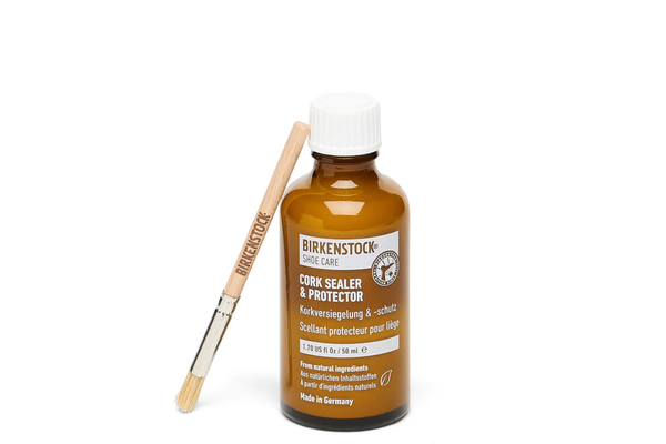 Keep your Birkenstock footwear in top shape with the Birkenstock Cork Sealer & Protector. Specially designed to nourish and protect the cork-latex edges of your footbeds, this sealer helps prevent cork from drying out or cracking, extending the life of your shoes. Its built-in brush makes it easy to apply a thin, even layer to seal and protect edges and small cracks.