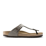 This Birkenstock sandal features a durable Birko-Flor™ upper — Birkenstock’s smooth, leather-like alternative with a soft backing for added comfort. Two adjustable straps provide a secure fit, while the suede lining and anatomically shaped cork-latex footbed offer personalised support. A raised toe bar encourages natural movement, and the deep heel cup helps distribute weight evenly. It’s finished with a lightweight EVA outsole and dual-layer jute for durability and moisture control.