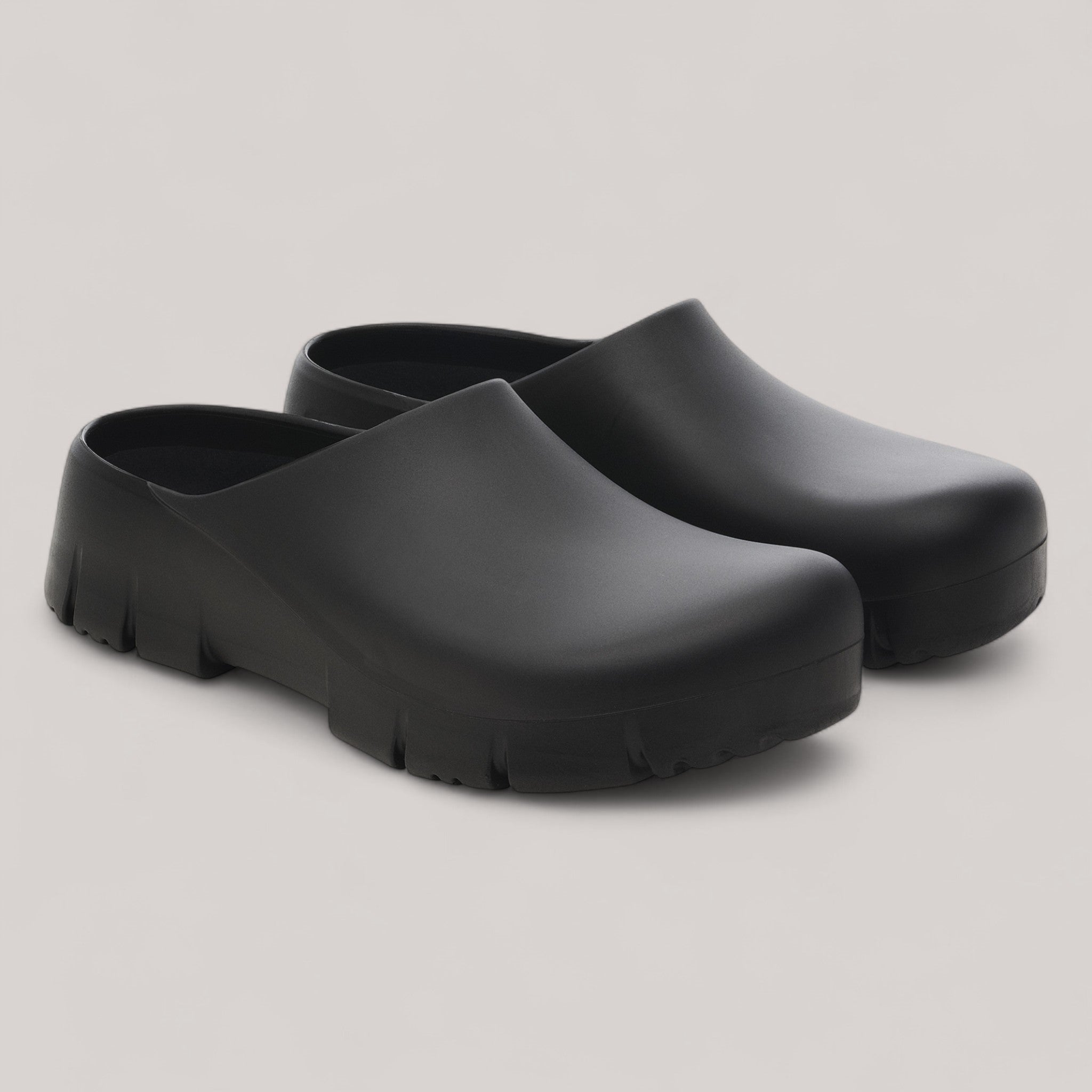 Made from flexible polyurethane with a smooth, water- and dirt-repellent surface, it's incredibly easy to clean and built to withstand demanding environments. Inside, a removable cork-latex footbed lined with skin-friendly, breathable microfibre ensures ergonomic comfort and can be swapped out for your own insoles if needed.