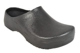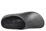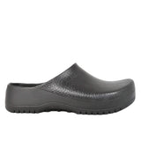 This waterproof clog features a durable polyurethane (Birki-foam) upper and a slightly narrower fit than the Profi Birki. Its slip-on design includes a raised back for a secure, clog-like feel. Inside, a microfiber-lined, anatomically contoured footbed offers all-day comfort, while the removable cork insole with linen lining molds to your foot for personalized support. The non-abrasive polyurethane outsole is resistant to grease and acid, and includes a patented angled heel for enhanced traction. Made in Germany for trusted quality and performance.