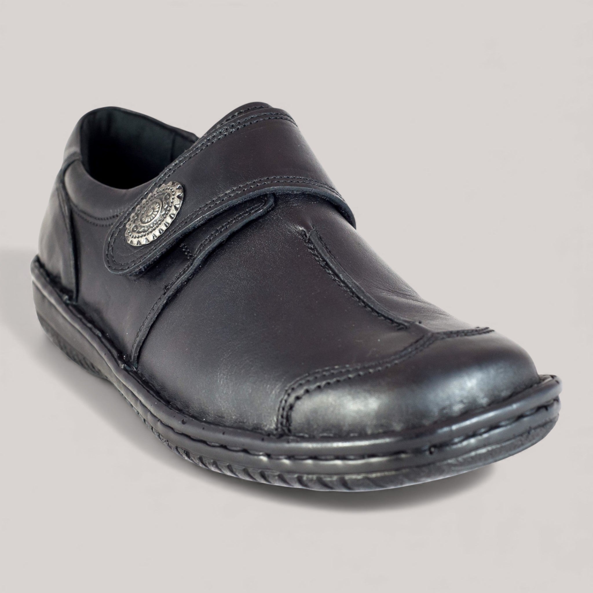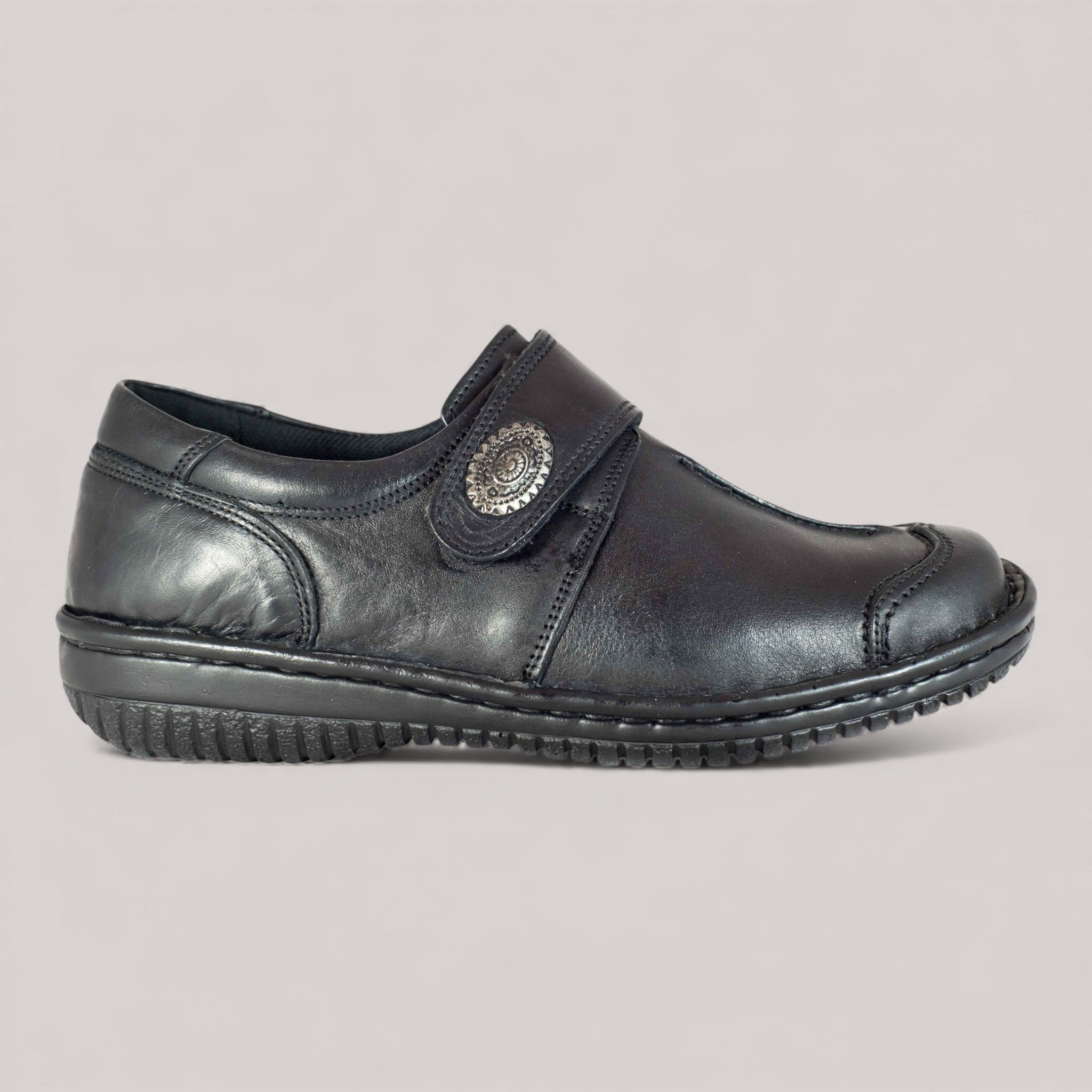 The 5072-27 is a beautifully crafted hand-stitched leather shoe designed for ultimate comfort. Featuring an adjustable Velcro strap for a personalised fit, padded removable innersoles for orthotics, and a padded heel collar, it ensures all-day wearability. With a flexible sole and leather detailing, this stylish shoe is as comfortable as it is functional. Finished with a pewter button, the 5072-27 is the perfect blend of comfort and craftsmanship. Made in Turkey, it’s designed for lasting comfort and style.