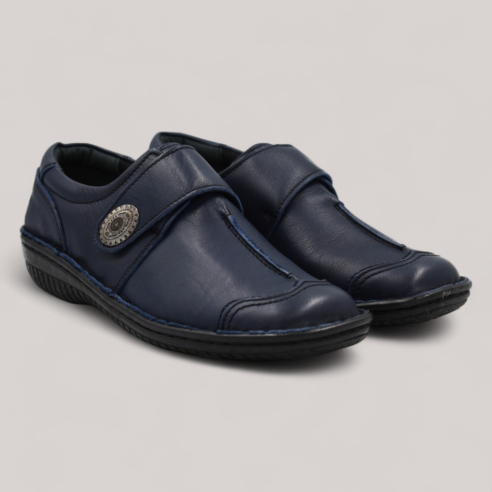The 5072-27 is a beautifully crafted hand-stitched leather shoe designed for ultimate comfort. Featuring an adjustable Velcro strap for a personalised fit, padded removable innersoles for orthotics, and a padded heel collar, it ensures all-day wearability. With a flexible sole and leather detailing, this stylish shoe is as comfortable as it is functional. Finished with a pewter button, the 5072-27 is the perfect blend of comfort and craftsmanship. Made in Turkey, it’s designed for lasting comfort and style.