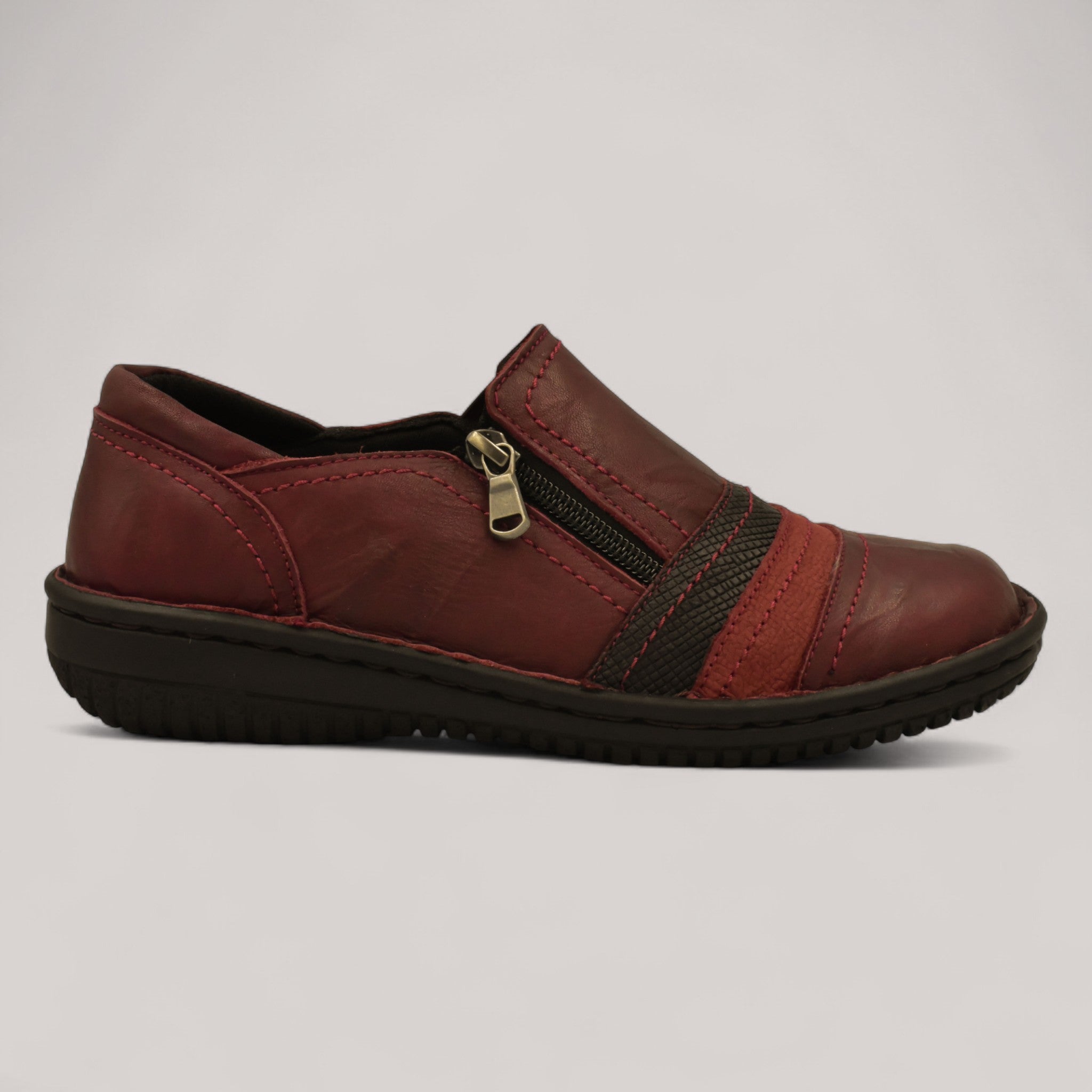 Leather upper for breathability with stitching detail for added interest. Slip on closure with side zip and elasticised gusset for easy on-off wear. Leather and textile lining for an abrasion-free environment for all-day wear and a perfect inner climate. Removable leather covered, padded insole for superior comfort. Synthetic sole for flexibility and traction on a variety of surfaces.