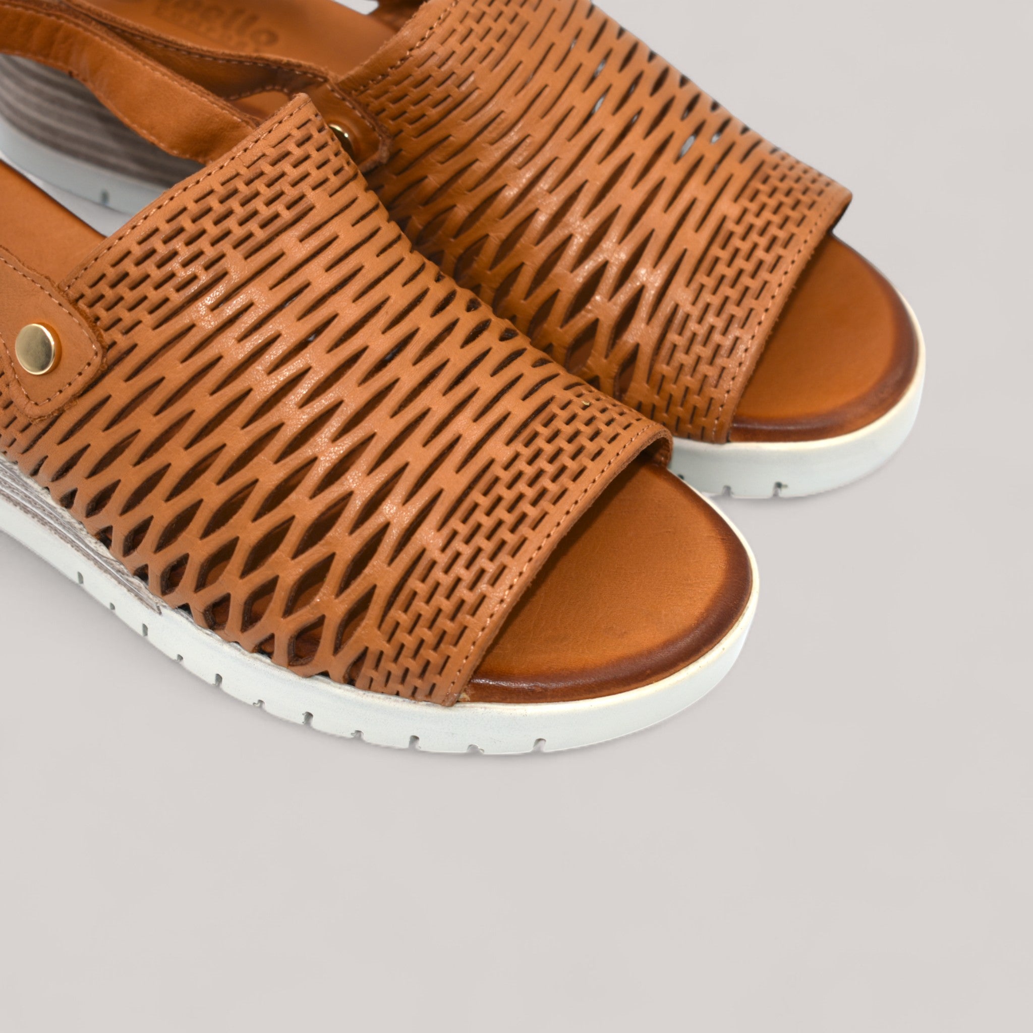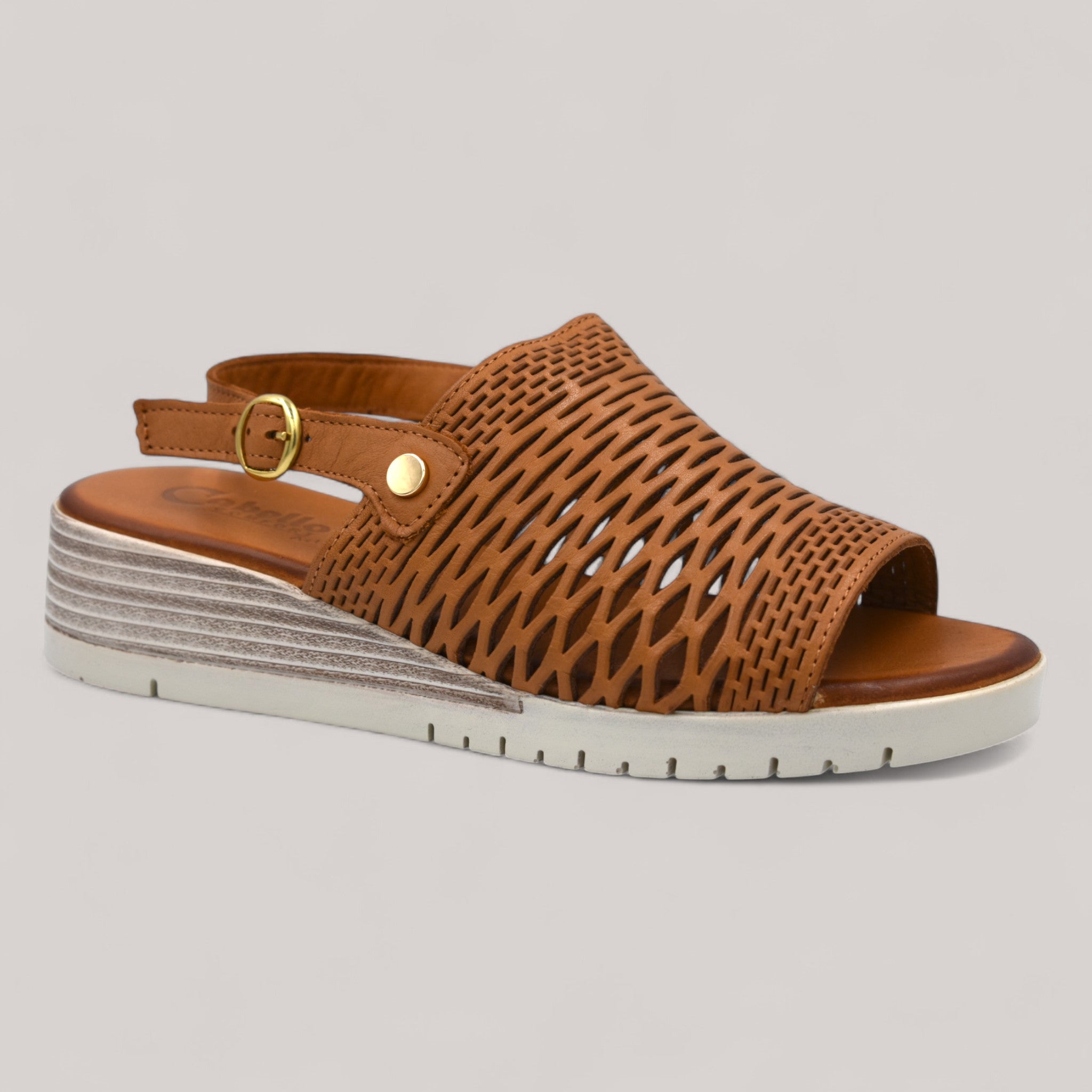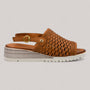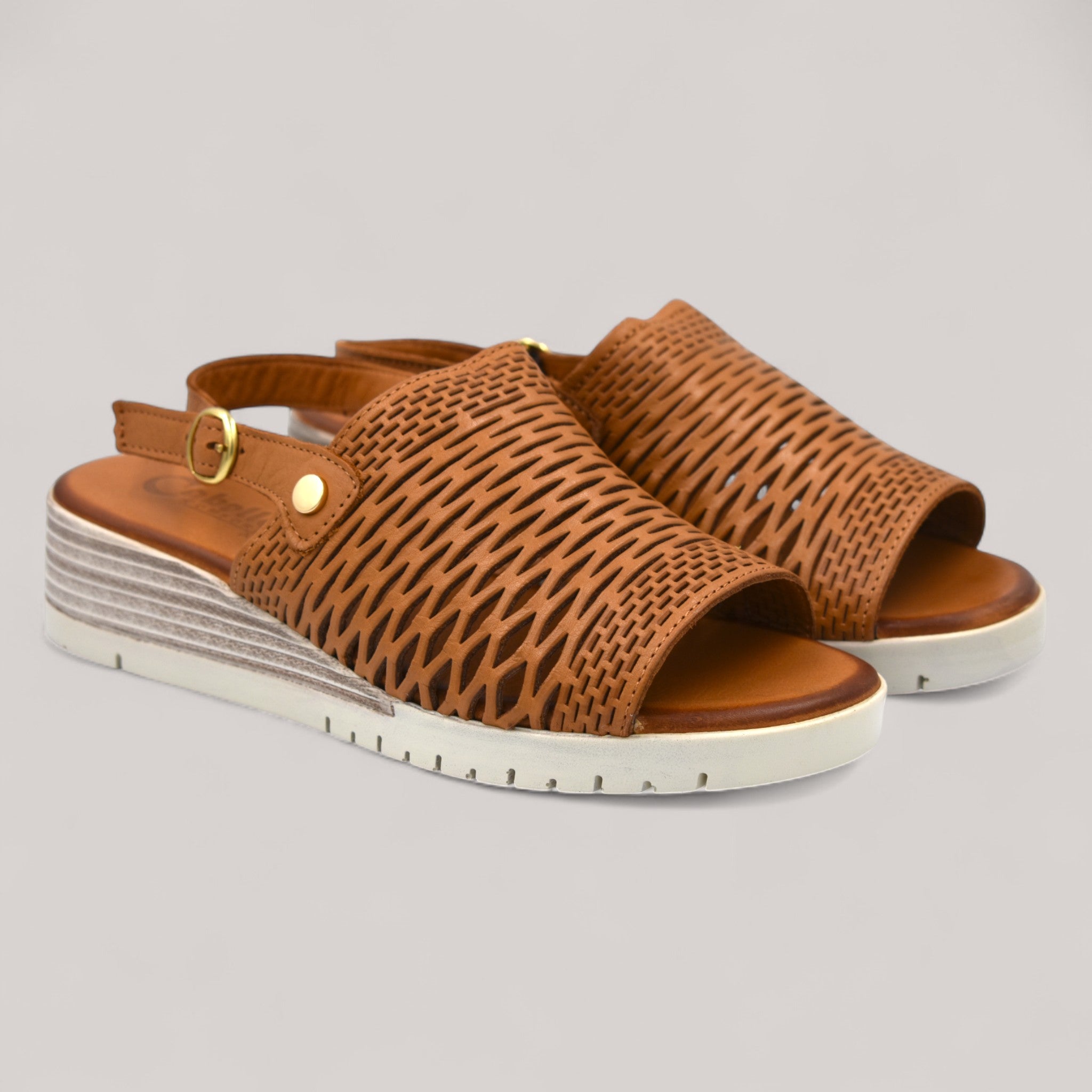 Add a touch of height and style to your summer wardrobe with this versatile wedge sandal, expertly crafted in Turkey. Featuring a perforated woven leather upper and soft leather lining, it offers breathable comfort and a refined look. The adjustable ankle strap with a gold buckle ensures a secure fit, while the lightweight poly sole provides flexibility and grip. A 45mm wedge heel adds flattering lift without sacrificing stability, making it perfect for casual outings, beach days, or relaxed gatherings. With its open-toe design and modern silhouette, this sandal is a go-to choice for warm-weather comfort and style.