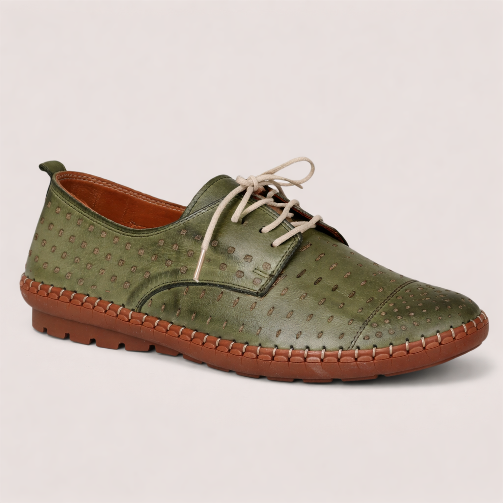 Crafted from buttery soft leather, the Cabello Kroot marries timeless style with practical comfort. Decorative punched detailing and precision stitching showcase meticulous craftsmanship, while elastic laces adapt to your foot throughout the day. The removable padded insole accommodates orthotic inserts, offering versatility for those seeking personalised support without sacrificing elegance.