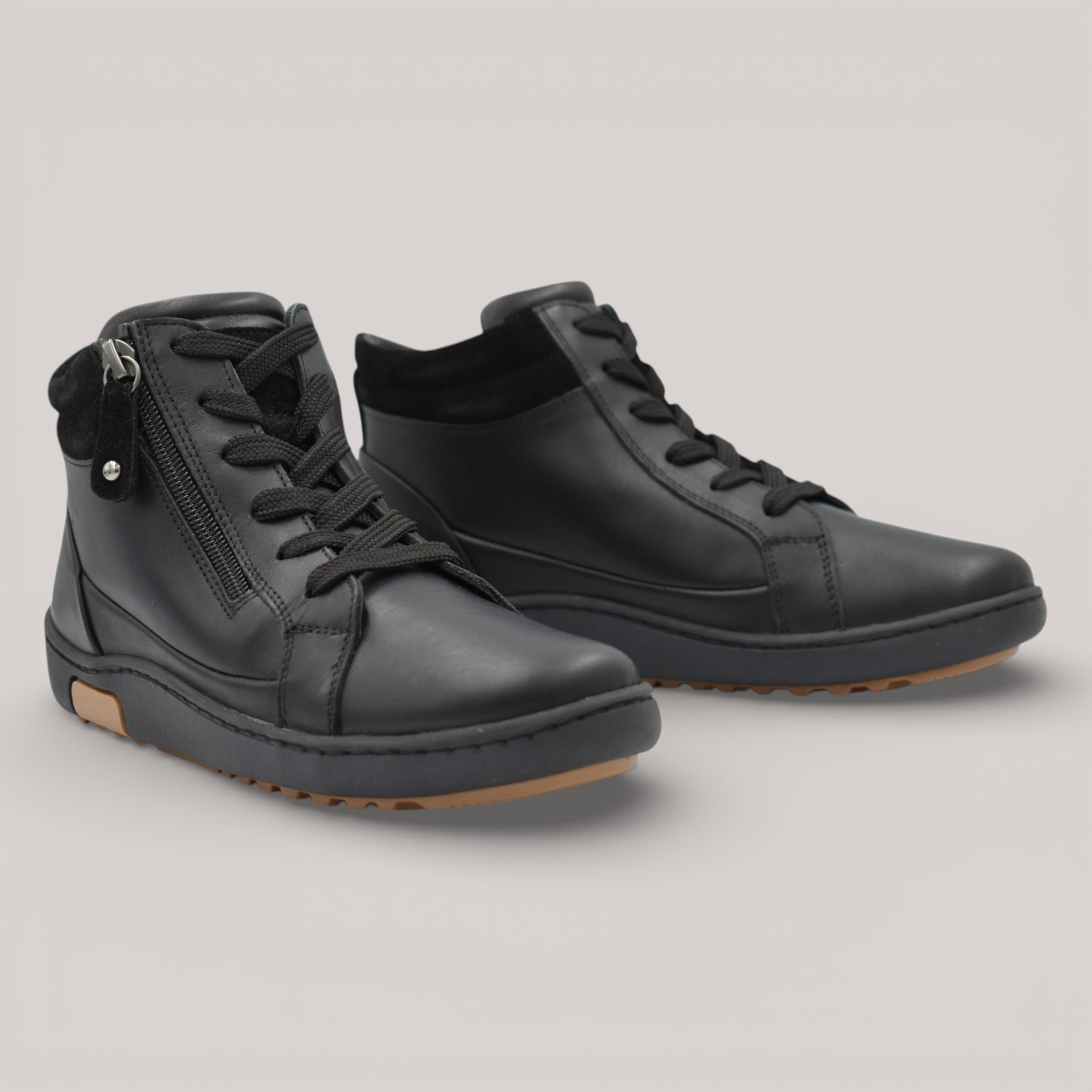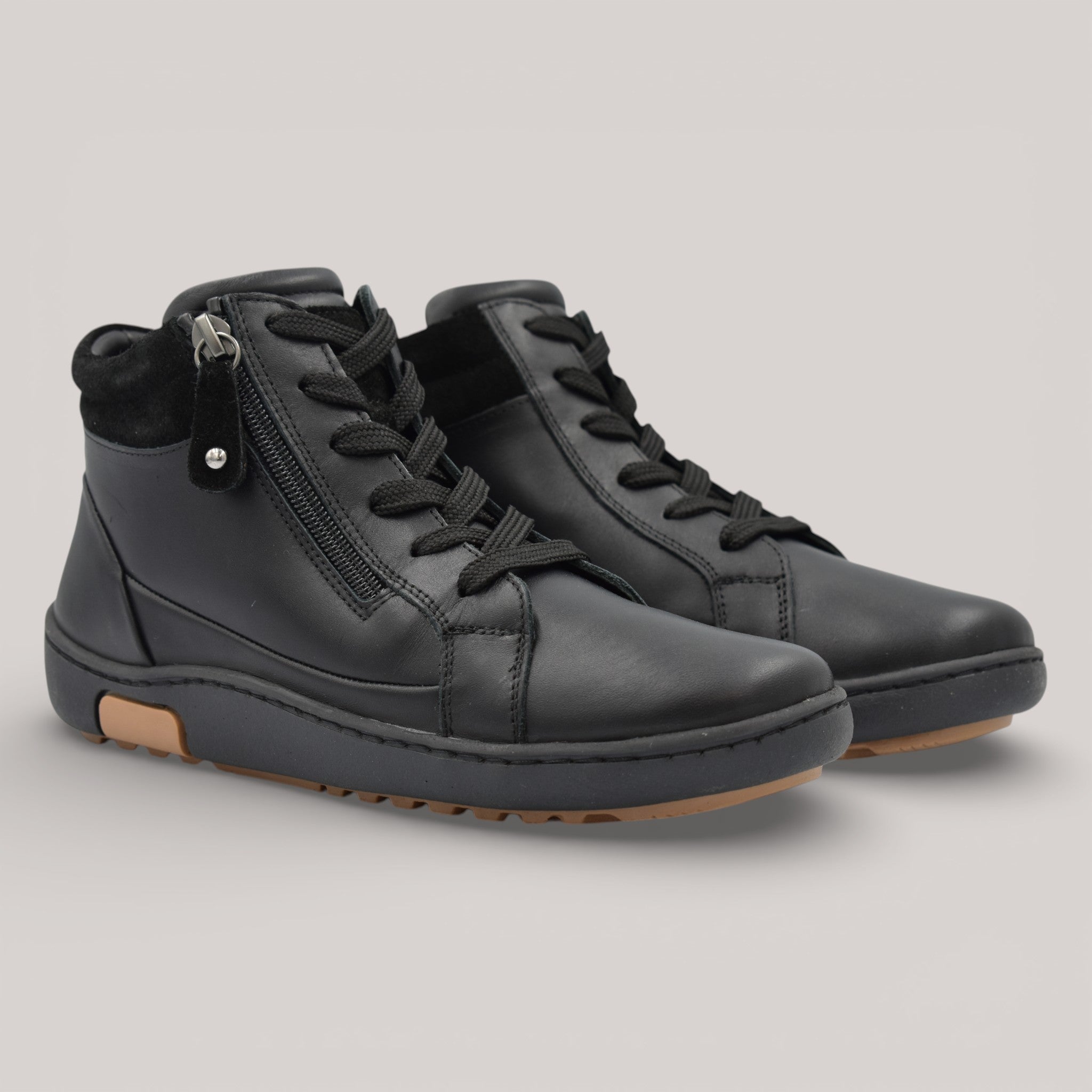 Introducing Pascal, the ankle boot that commands attention this winter. Expertly crafted from contrasting leather and suede, this versatile style features dual zip and lace fastening for a personalised fit. The padded heel collar and removable leather insole work in concert to deliver superior comfort, while the thermo sole ensures stability through the season. Orthotic-friendly construction welcomes all-day wear. Thoughtfully made in Turkey.