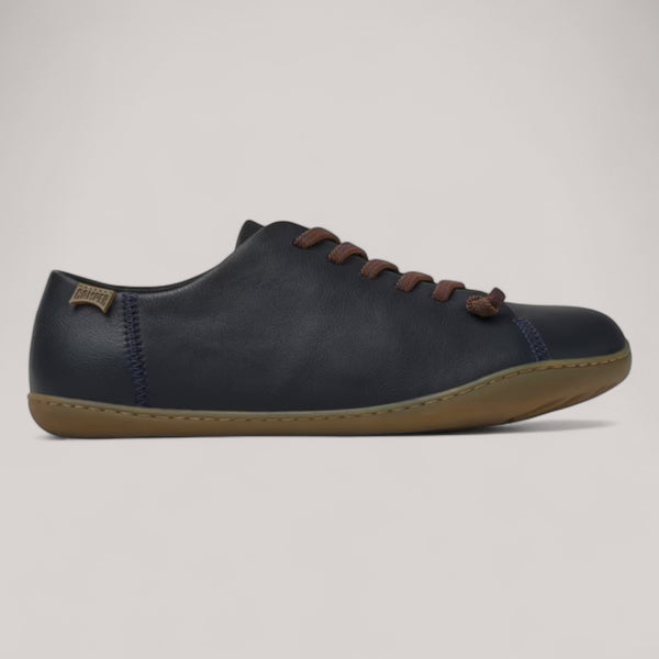 The Peu Cami is a nubuck men's shoe featuring a cushioned PU footbed, convenient elastic laces, and TPU outsoles crafted with 20% recycled materials. A Camper icon that evolves each season, it boasts 360-degree stitching and Strobel construction for exceptional flexibility and durability—designed to move with you through every step and season.