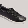Elevate your every-day essentials with Ellie in go-to Black. This refreshed favourite maintains the same fit and feel you love but with a slightly softened toe for a contemporary look. Featuring jacquard-weave ribbon laces and additional recycled cotton laces provided for alternative styling, Ellie is a mainstay with versatility. With a triple-layer support and cushion system, custom fit options, and podiatrist-designed footbed technology, Ellie also combines classic style with all-day comfort. Handcrafted leather and eye-catching sole details complete the look.