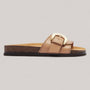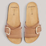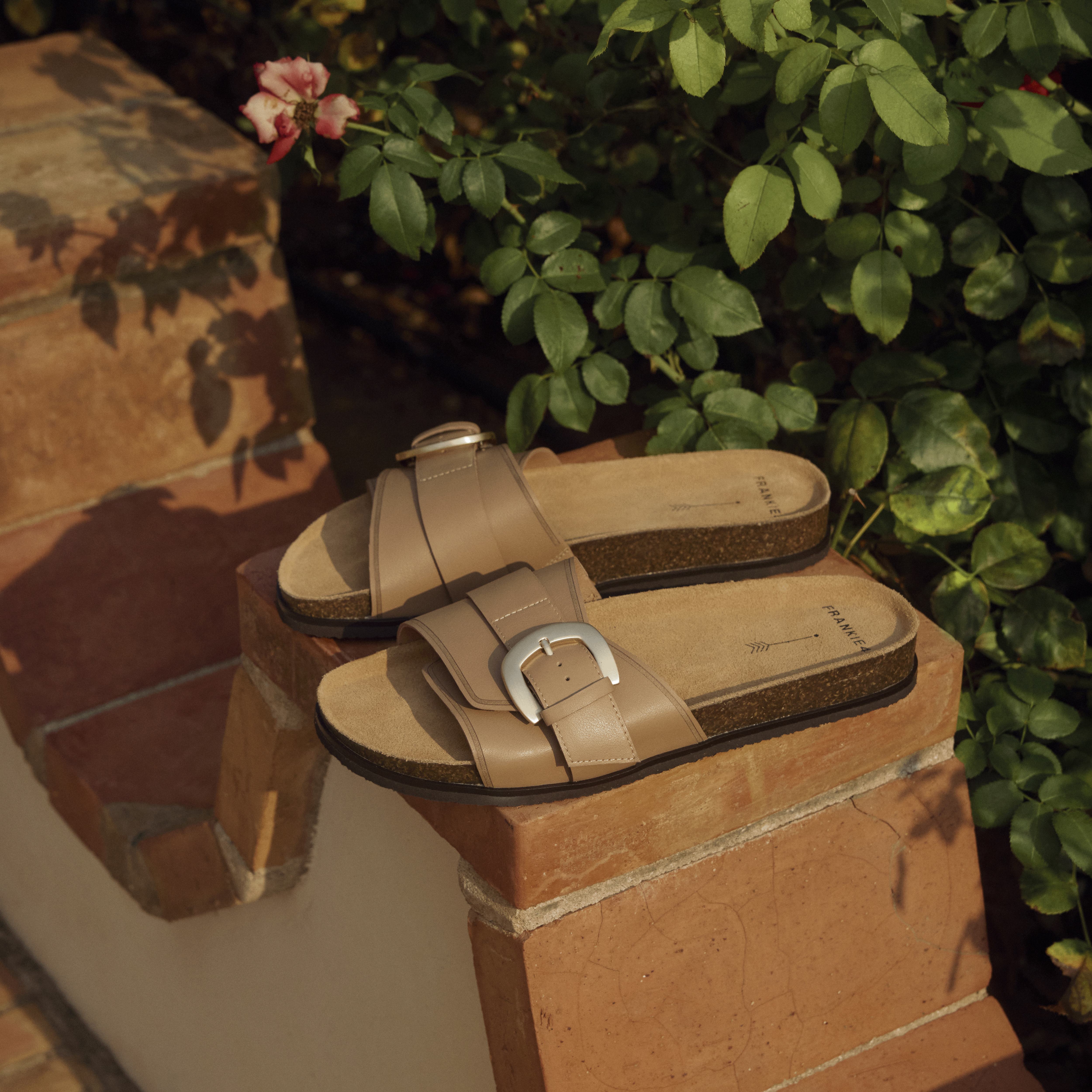Effortless sophistication meets thoughtful support. Monterey in Camel is an elevated slide that blends everyday ease with refined details — smooth leather, a statement buckle, and an adjustable upper strap that fits wide and narrow soles with ease for a perfectly tailored feel. Set on our podiatrist-designed Sole Hero® Footbed, moulded with lightweight, flexible rice husk (an upcycled agricultural byproduct), it delivers built-in heel, arch, and forefoot support for all-day comfort. It’s luxury you can slide into, every day.