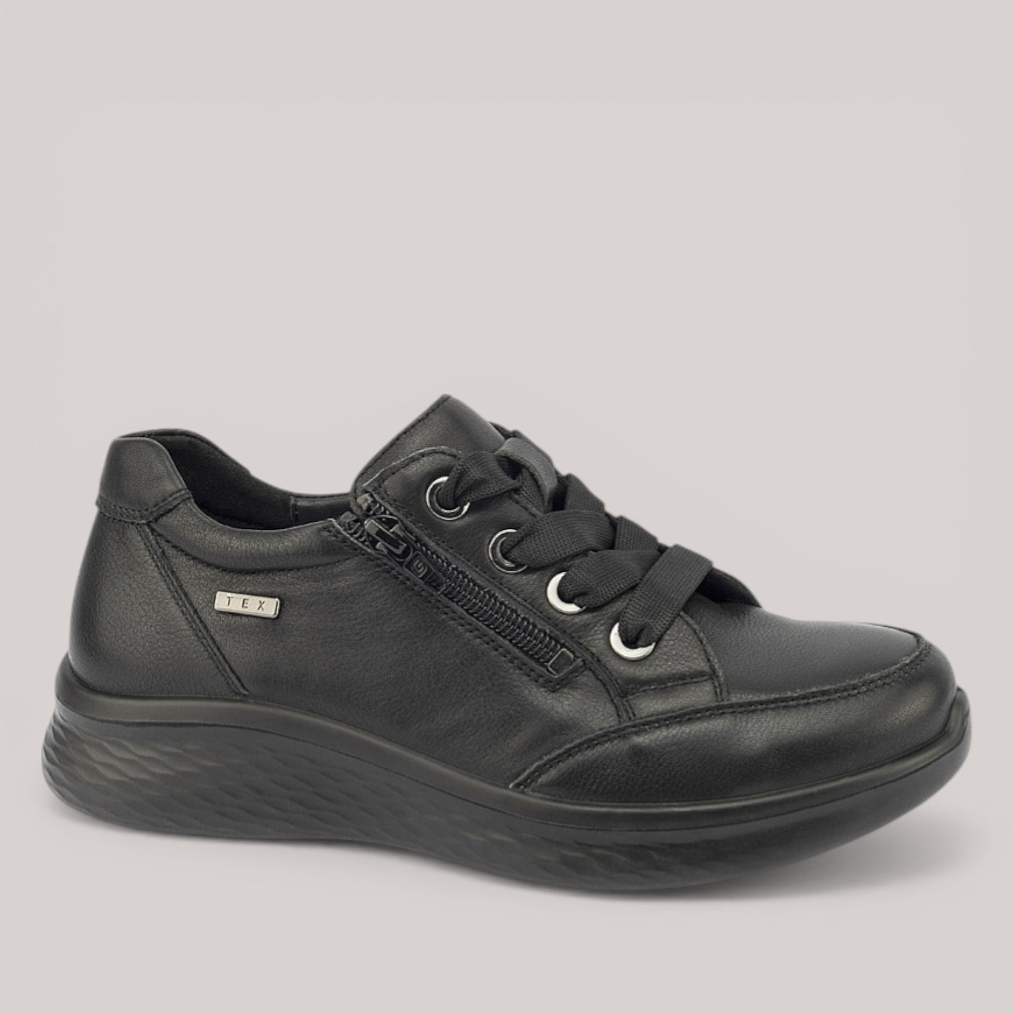 Dual zip-and-lace fastening and soft premium leather uppers deliver quick entry and a personalised fit. The flared outsole provides stability and grip across surfaces, while a padded heel grip keeps the shoe secure. Anatomically contoured insoles cradle your arch and reduce end-of-day fatigue. Removable HD insoles are exchangeable for custom orthotics. TEX membrane offers weatherproof protection and warmth.