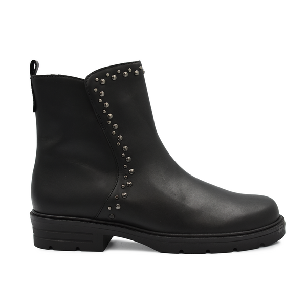Step into effortless style with the Gabor 54654 ankle boot. Crafted from sleek leather with chic studded detailing, this boot offers the perfect balance of sophistication and edge. The convenient inside zip allows for easy wear, while the 4cm block heel and round toe ensure all-day comfort. Finished with a soft textile lining, it’s a refined choice for any occasion.