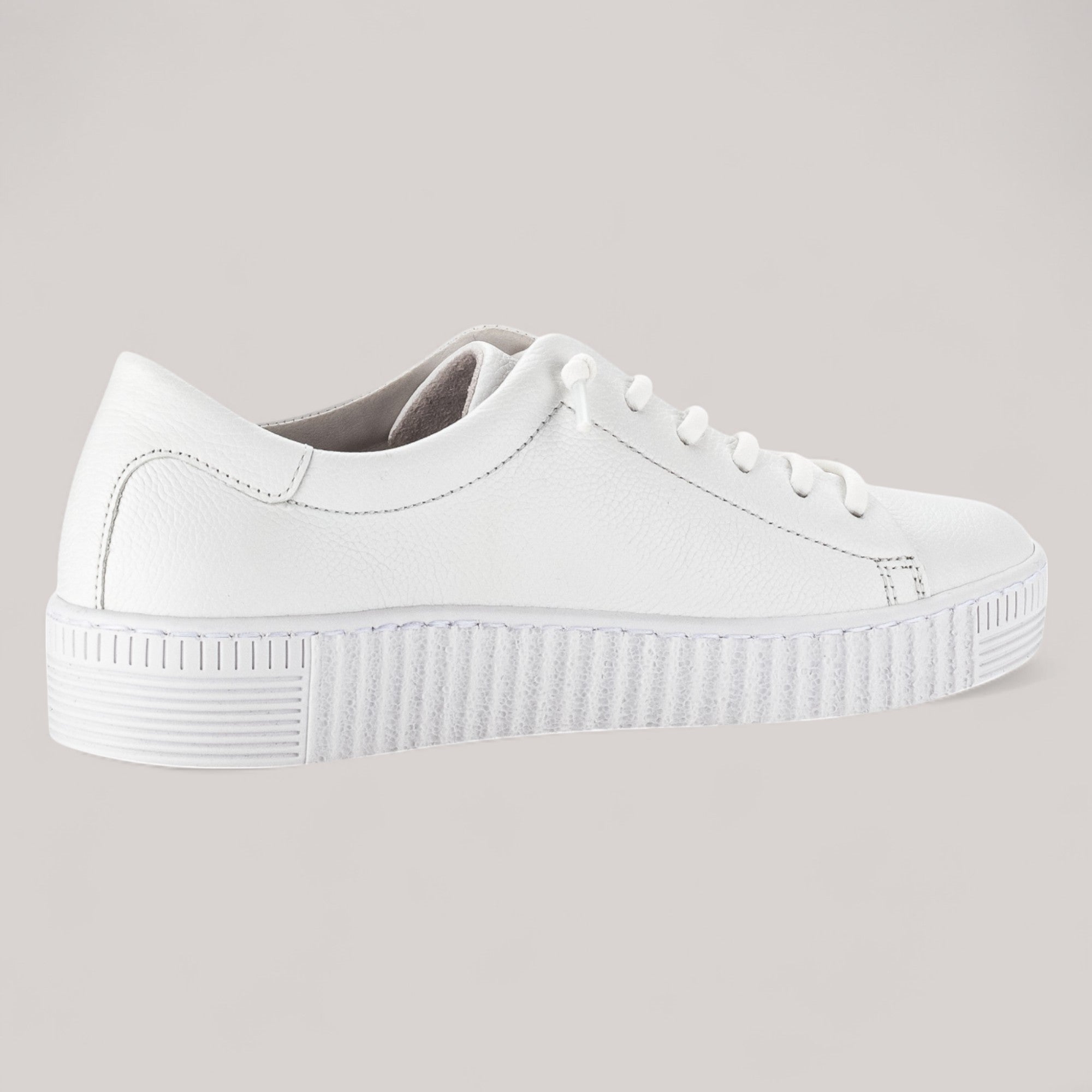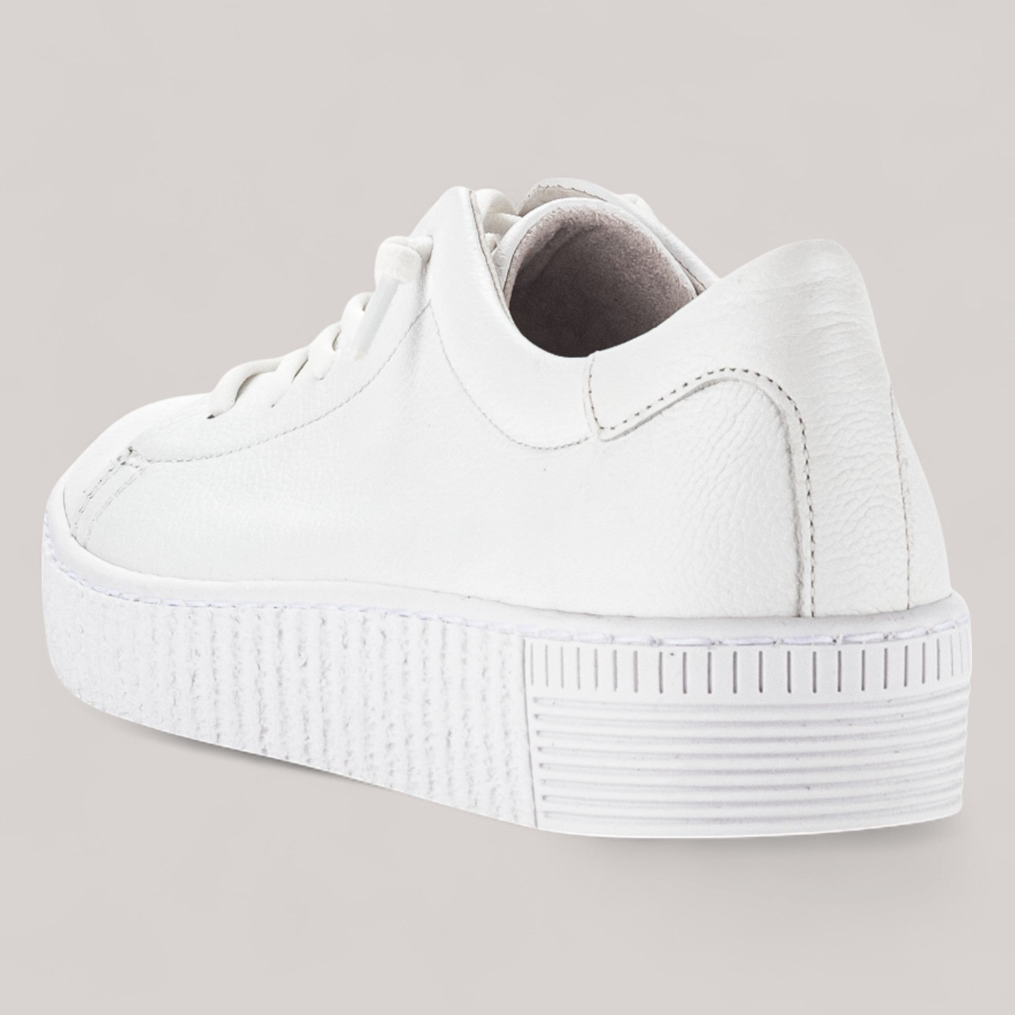 This white leather sneaker is a timeless essential, crafted for both style and durability. Featuring a smooth upper, subtle stitching details, and crisp elastic white laces, it delivers a sleek, minimalist look. The textured rubber sole offers reliable grip and everyday comfort, making it perfect for work, travel, or weekend wear. Versatile and effortlessly stylish, it’s a wardrobe staple that pairs with everything.