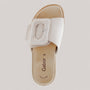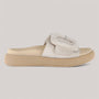 This beige slide sandal is the epitome of understated elegance. Featuring a thick sole and a wide upper strap with a bold rectangular buckle, it offers a secure fit with a touch of modern flair. The slightly elevated heel adds subtle lift, while the neutral tone makes it effortlessly versatile. Perfect for everyday wear, this sandal pairs seamlessly with any outfit for a refined, relaxed look.