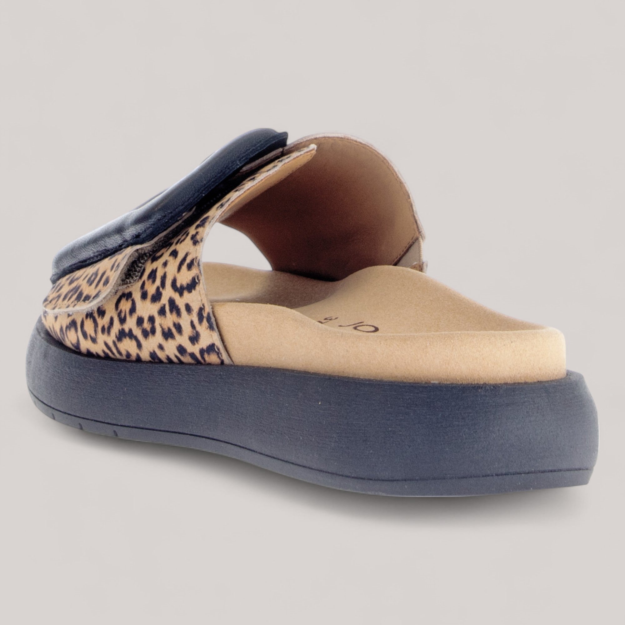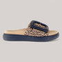 Unleash your wild side with this bold slide sandal, featuring a striking leopard print strap and a statement black buckle. The thick black sole offers stability and support, while the soft beige footbed ensures lasting comfort. Perfect for casual outings or adding a pop of personality to your look, this sandal is your go-to for effortless style with a touch of edge.