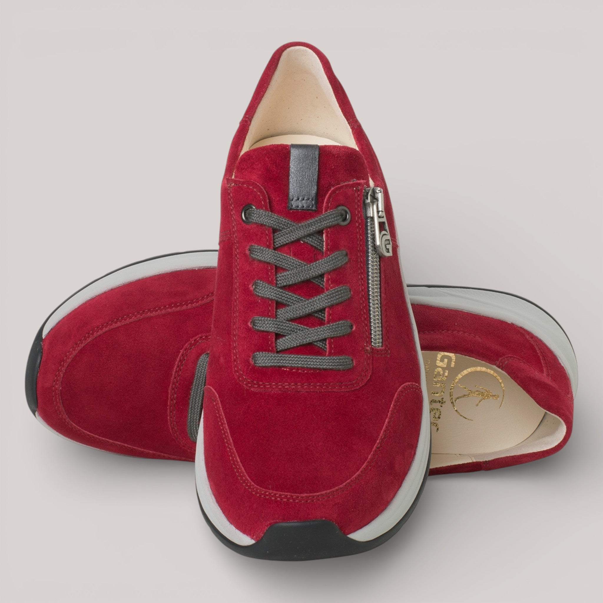 The HIGH FLYER ankle boot merges contemporary style with purposeful comfort. Crafted from glossy patent leather and supple suede, this women's bootie features a natural wool lining for warmth during cooler months. An inner side zipper ensures effortless on-and-off convenience. Engineered with GANTER AKTIV technology, the innovative 4-point rolling sole delivers a subtle massage with each step, promoting upright posture, spinal support, and joint relief.