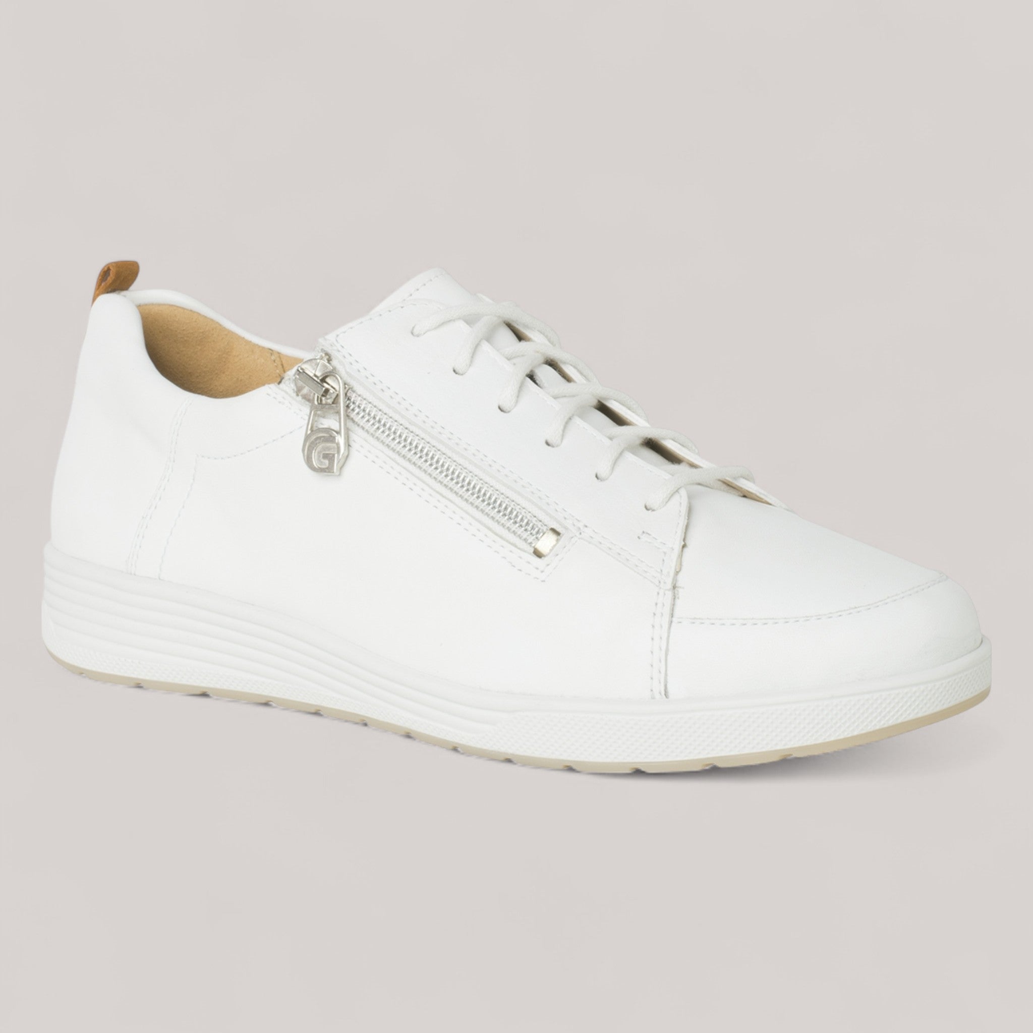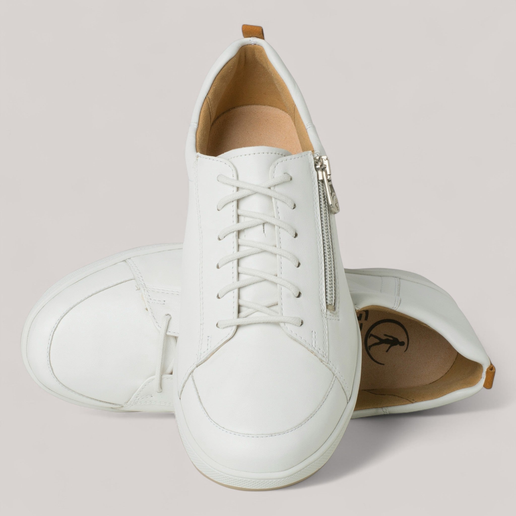 Where sportive design meets casual chic, KLARA is the perfect blend of style and comfort. Crafted from premium smooth leather, this sneaker features delicate cotton laces and a stylish side zip for a refined finish. The K width offers generous room for a relaxed fit, while the clean silhouette gently flatters the foot – whether you're pairing it with slim jeans or wide-leg trousers.