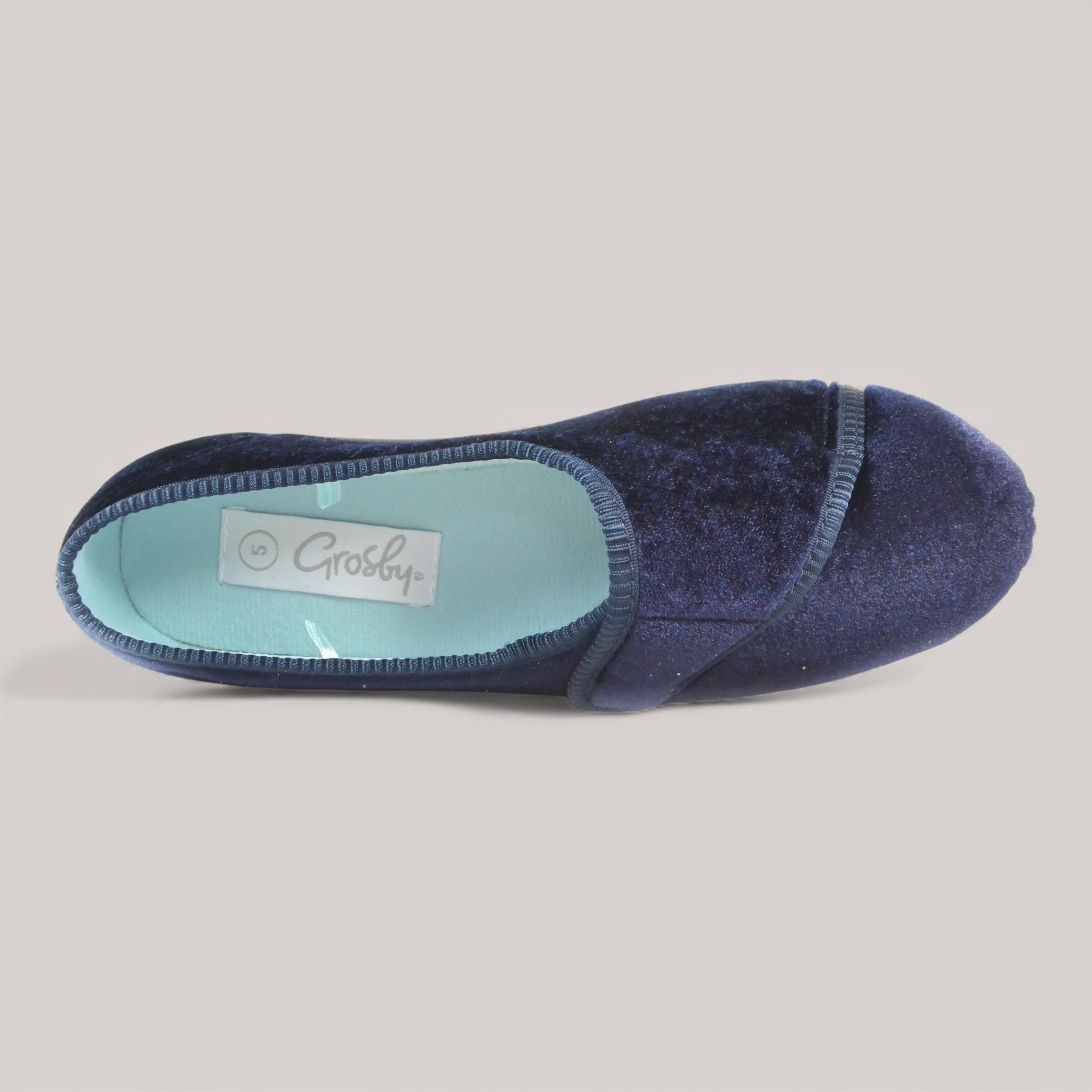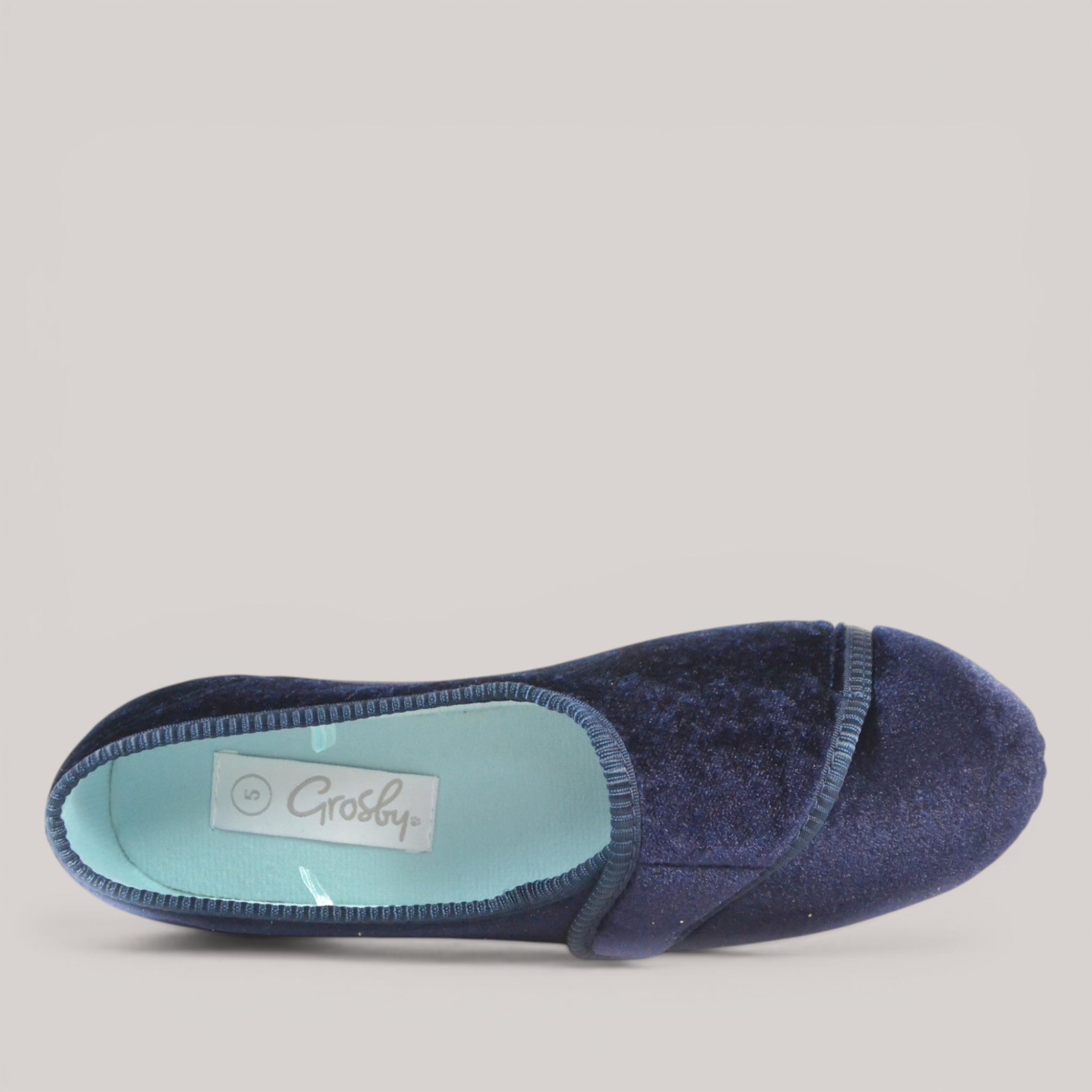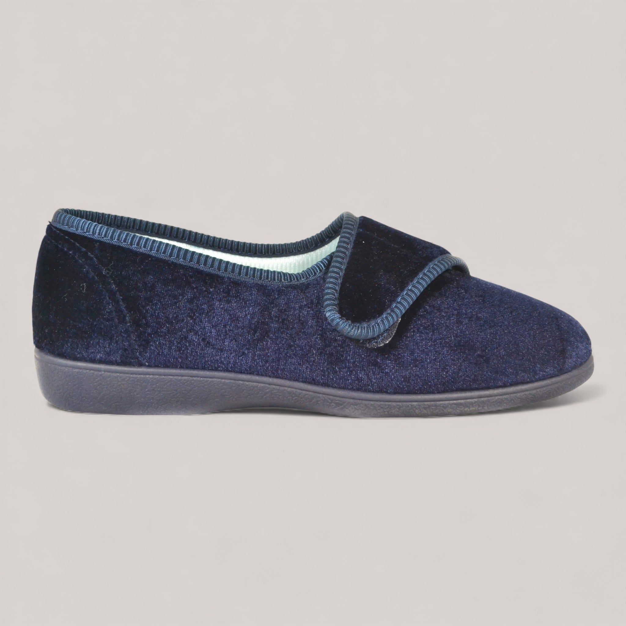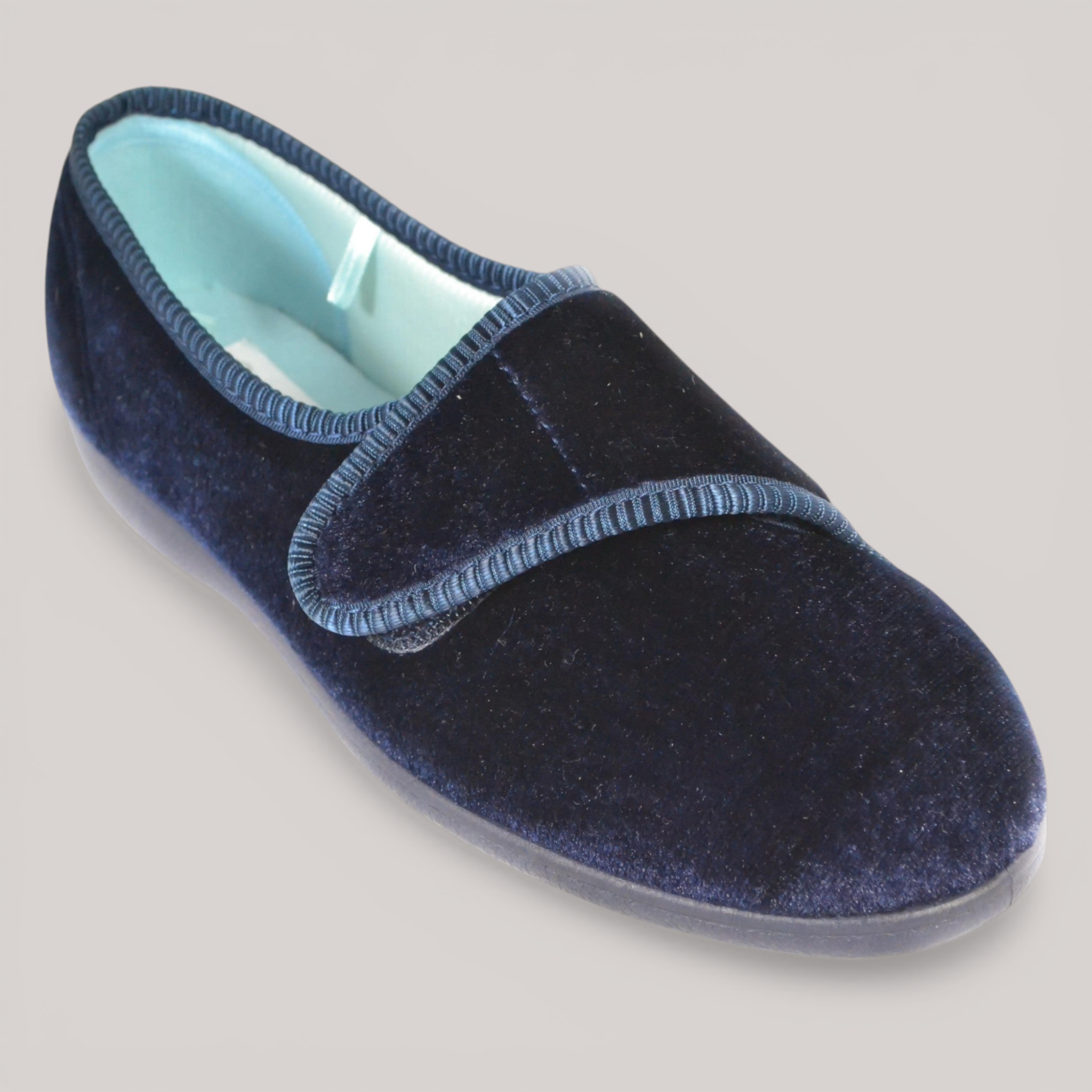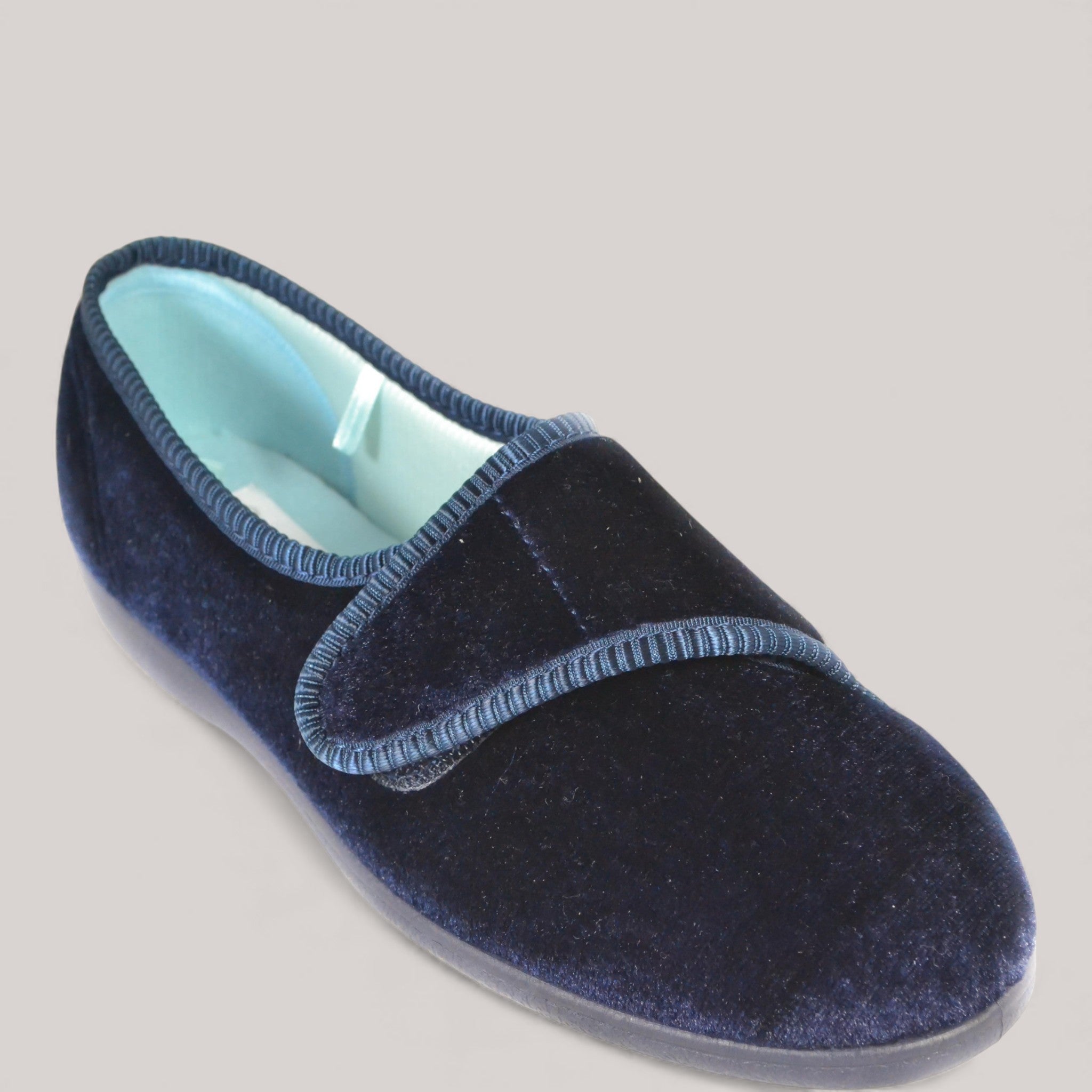 Velvet upper for a smooth finish. Slip on closure with adjustable velcro strap for easy on-off wear. Synthetic lining for an abrasion-free environment for all-day wear. Synthetic sole for flexibility. Suitable to indoor and light outdoor use.