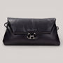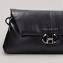 Sophisticated padded clutch featuring a secure twist-lock closure and adjustable strap for versatile carry options. Crafted from durable PU with a thoughtfully designed interior: dual compartments and zippered pockets keep essentials organised, while the branded logo lining adds a refined finishing touch. Compact dimensions (30cm W × 16cm H × 7cm D) make it ideal for evenings or everyday essentials.