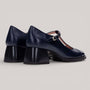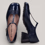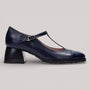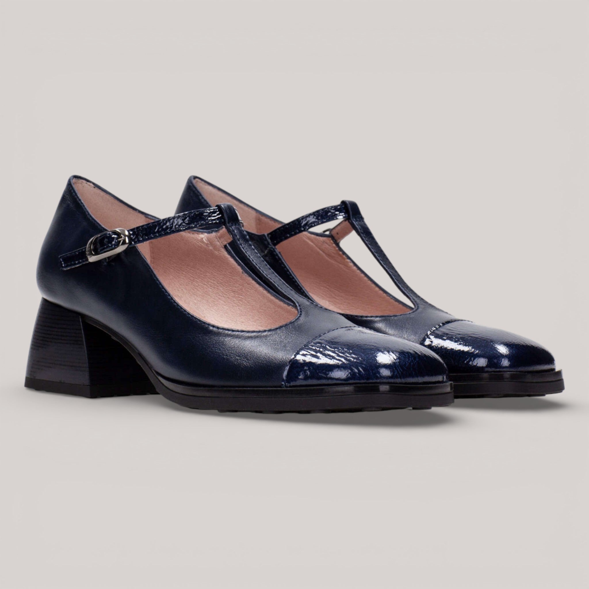 Refined T-bar design with an adjustable buckle and striking square toe silhouette. Crafted from premium leather with a non-animal-based, breathable inner lining that regulates temperature for all-day comfort. The rubber-effect sole features a distinctive studded profile and sits on a 4.5 cm heel. Triflow Technology delivers triple padding in the tread area, absorbing impact and cushioning each step with effortless elegance.