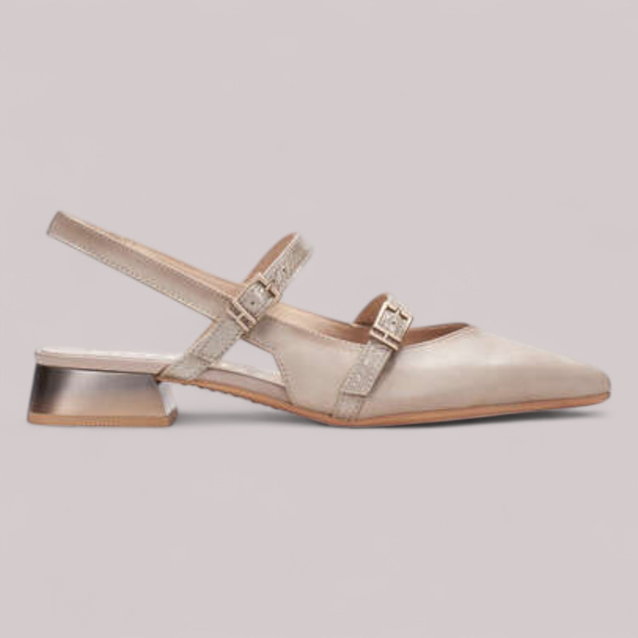 Refined and contemporary, this slingback shoe is the perfect blend of sophistication and comfort. Designed with a slim toe that enhances the natural shape of the foot, it offers a sleek, flattering silhouette ideal for elegant occasions.