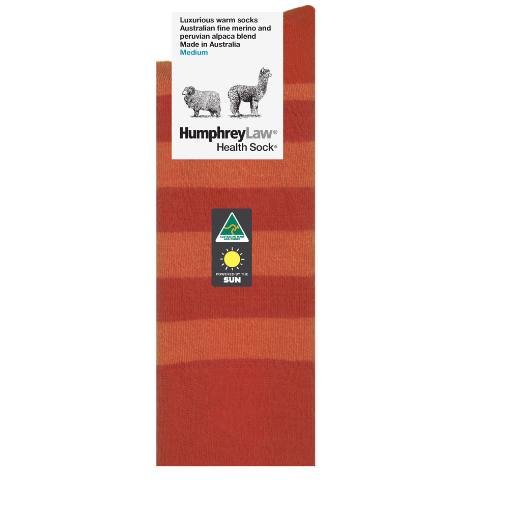 This luxurious and warm sock is a blend of two natural yarns - fine merino wool and baby alpaca. The 19 micron Australian merino fleece wool is sourced from graziers in Southern NSW. The baby Alpaca is sourced from Peru and is soft, supple and smooth containing microscopic air pockets which are perfect for retaining feet warmth. This sock is not recommended for high abrasion use such as in work boots. A Health Sock® with no tight elastic top.