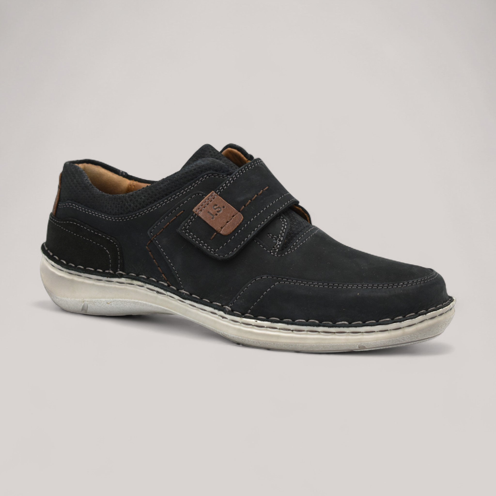 Experience superior comfort and craftsmanship with this men's shoe, thoughtfully designed for wider feet with a generous K width. The upper is made from premium leather, offering durability and a refined look, while the interior combines soft leather and textile for breathable, all-day comfort. A closed toe and secure Klett (hook-and-loop) closure provide a classic silhouette with easy adjustability. The shoe features a 20 mm heel for subtle elevation and ergonomic support, and a lightweight PU outsole for excellent cushioning and grip. Hand-sewn construction ensures lasting quality, and the exchangeable leather footbed allows for personalised comfort, making this shoe a perfect blend of tradition and modern functionality.