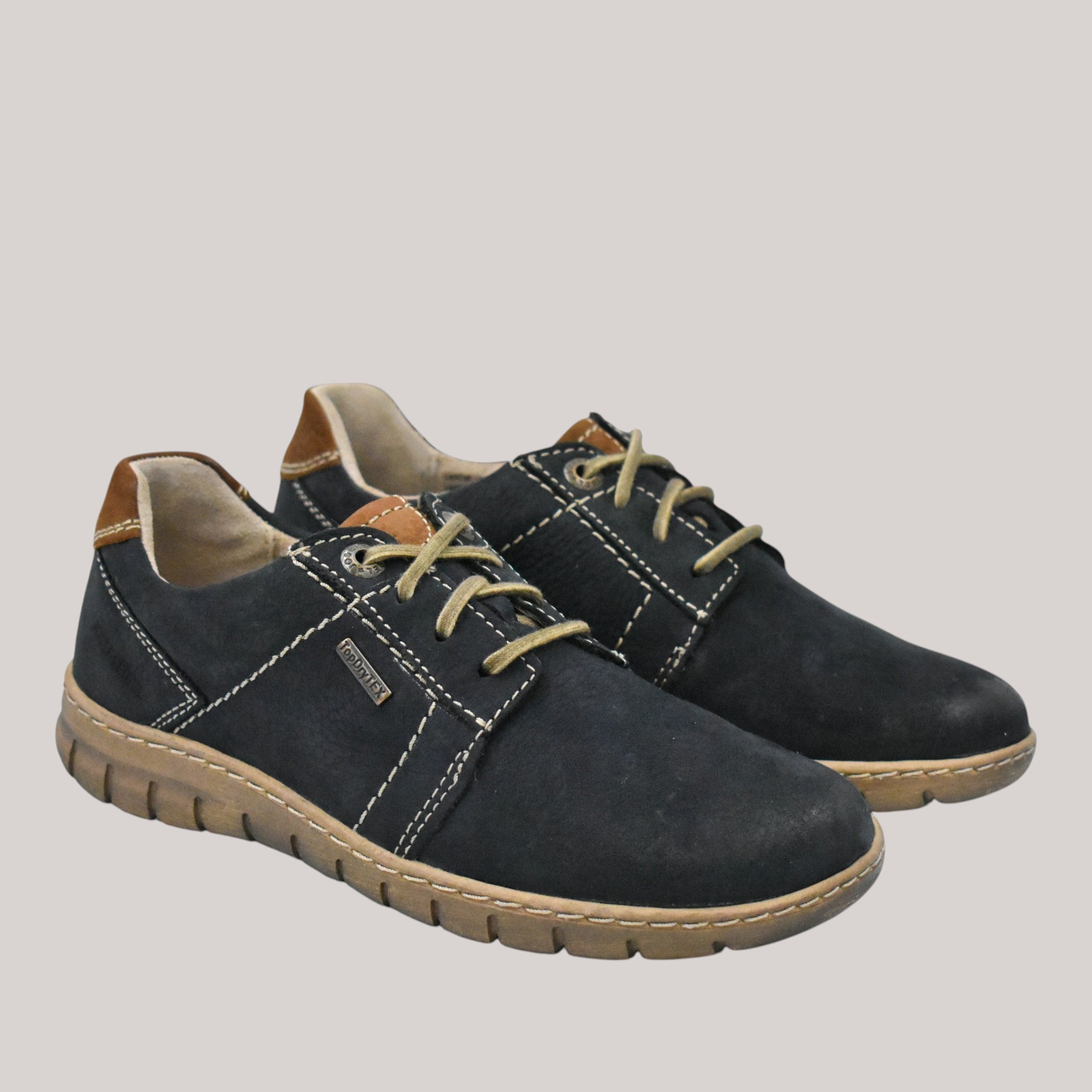 Supple leather upper for breathability with contrast stitch detailing for added interest. Leather and textile lining for an abrasion free environment and all day wear. Lace up closure allows for a secure and personalised fit. Removable insole. Synthetic sole for durability and traction on a variety of surfaces.