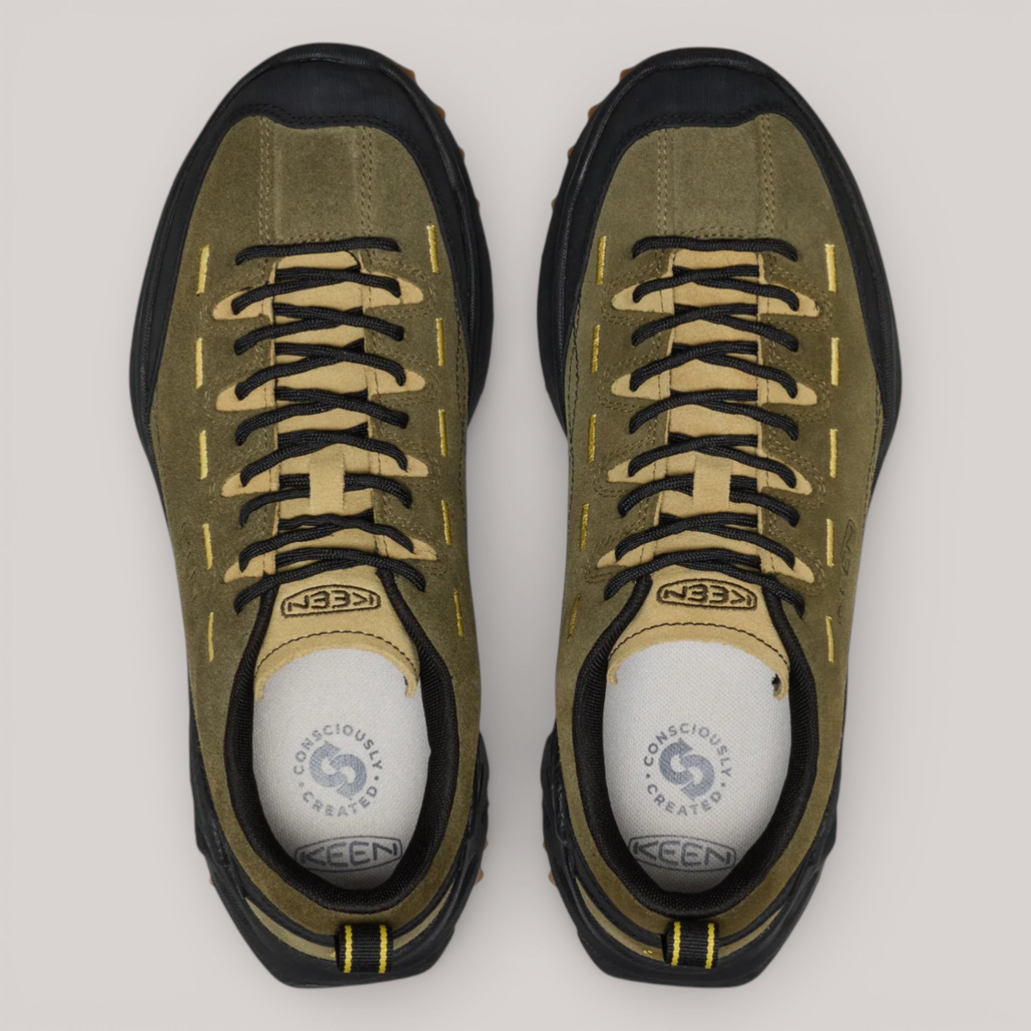 Keen's Jasper Zionic delivers responsive comfort with a contoured fit that hugs your foot naturally. The removable foam insole with arch support cushions every step, while the stability shank keeps you grounded without added weight. Premium LWG-certified leather pairs with breathable mesh lining for durability and breathability. Multi-directional lugs grip confidently on varied terrain, and eco-conscious features like natural odor control and environmentally preferred materials make this a responsible choice for everyday wear and light trails.