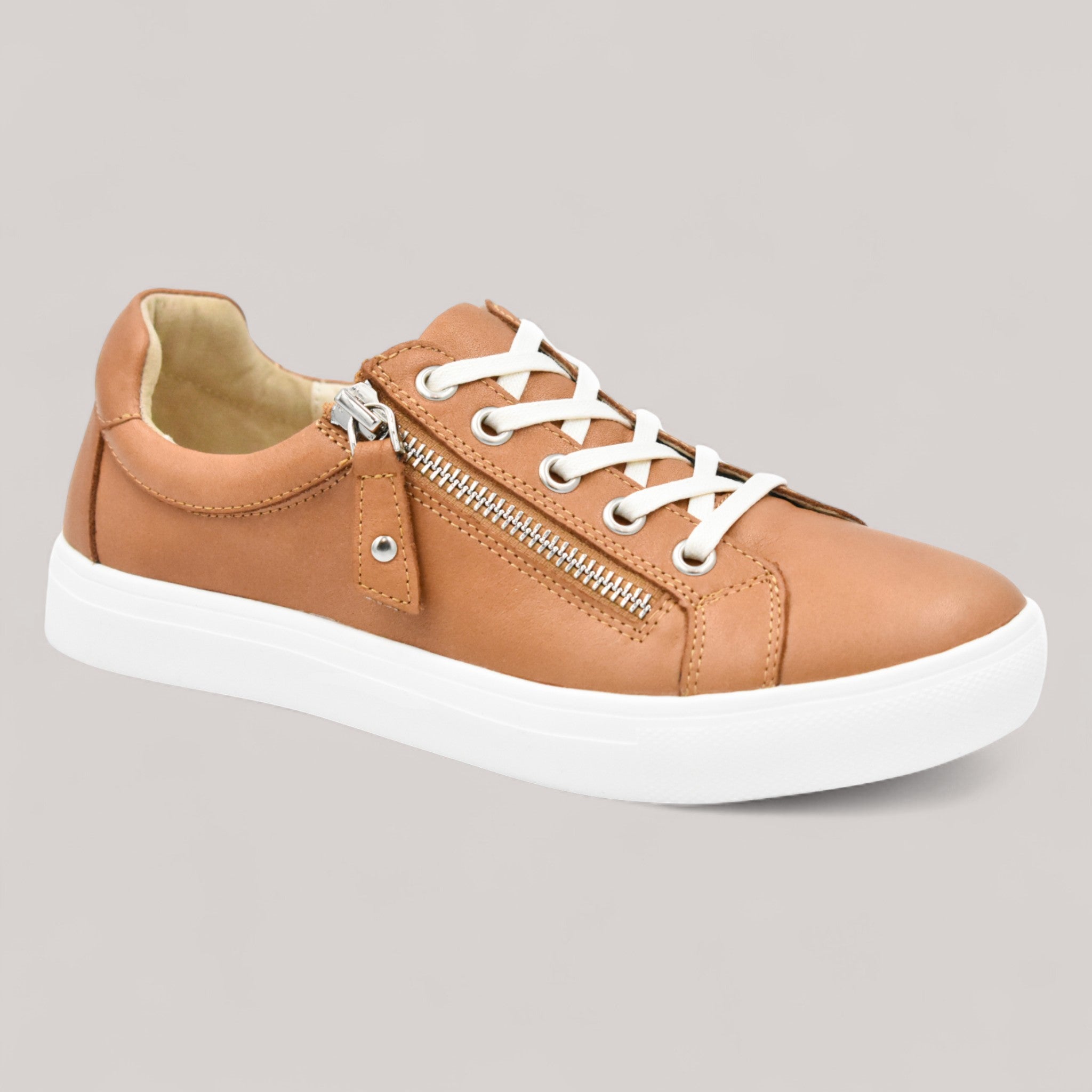 Crafted from breathable leather with printed side panels for added style, this shoe features a lace-up closure with a convenient side zip for easy on-off wear and a secure fit. Inside, a leather lining ensures an abrasion-free environment, while the padded removable insole provides extra comfort and accommodates orthotics. Finished with a flexible PU sole for durability and traction, this design is ideal for wider feet and all-day wear.