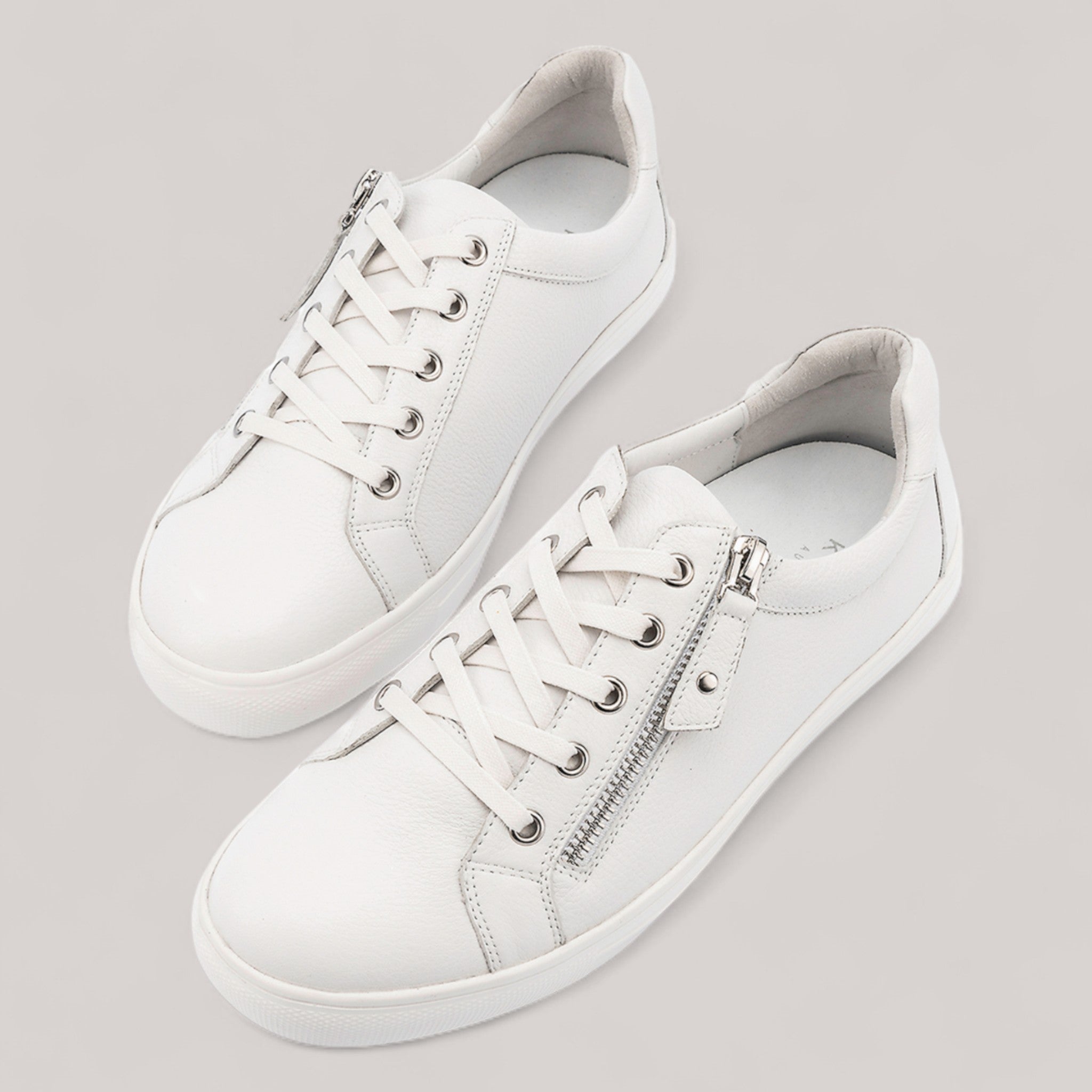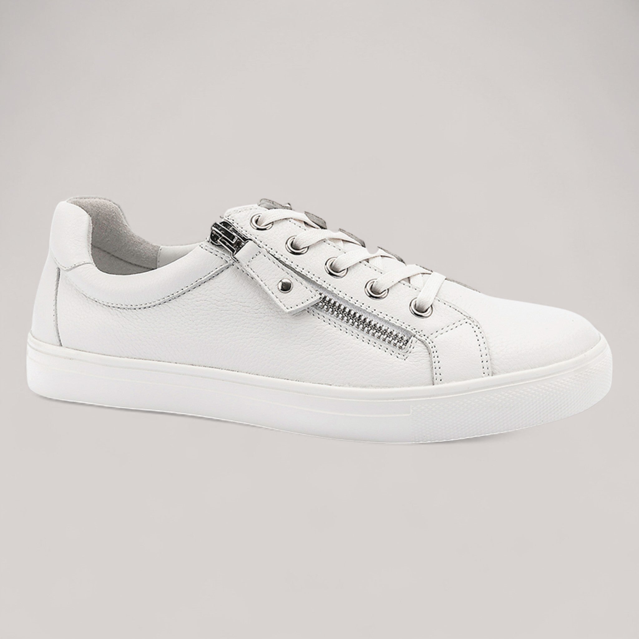 Crafted from breathable leather with printed side panels for added style, this shoe features a lace-up closure with a convenient side zip for easy on-off wear and a secure fit. Inside, a leather lining ensures an abrasion-free environment, while the padded removable insole provides extra comfort and accommodates orthotics. Finished with a flexible PU sole for durability and traction, this design is ideal for wider feet and all-day wear.