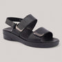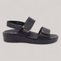 This versatile ladies’ sandal offers a personalised fit and all-day comfort, ideal for orthotic wearers or anyone seeking superior support. Three Velcro adjustment points at the forefoot, ankle, and heel ensure a secure fit, while the contoured removable insole provides heel and arch support and can be swapped for custom orthotics. A forefoot insole is included for use with ¾ orthotics. Crafted from premium leather uppers that mould to your foot, the sandal features a lightweight PU outsole with air bubbles for shock absorption, a steel ¾ stabilising shank for foot alignment, and a slight heel elevation for reduced pressure and improved balance.