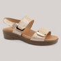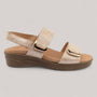 This versatile ladies’ sandal offers a personalised fit and all-day comfort, ideal for orthotic wearers or anyone seeking superior support. Three Velcro adjustment points at the forefoot, ankle, and heel ensure a secure fit, while the contoured removable insole provides heel and arch support and can be swapped for custom orthotics. A forefoot insole is included for use with ¾ orthotics. Crafted from premium leather uppers that mould to your foot, the sandal features a lightweight PU outsole with air bubbles for shock absorption, a steel ¾ stabilising shank for foot alignment, and a slight heel elevation for reduced pressure and improved balance.