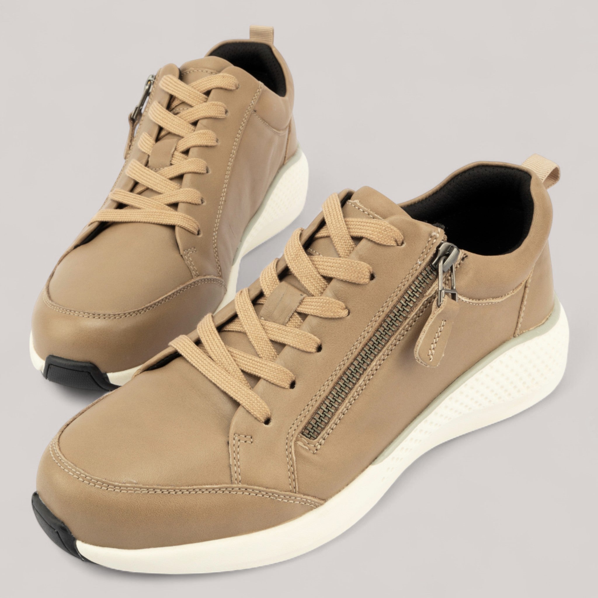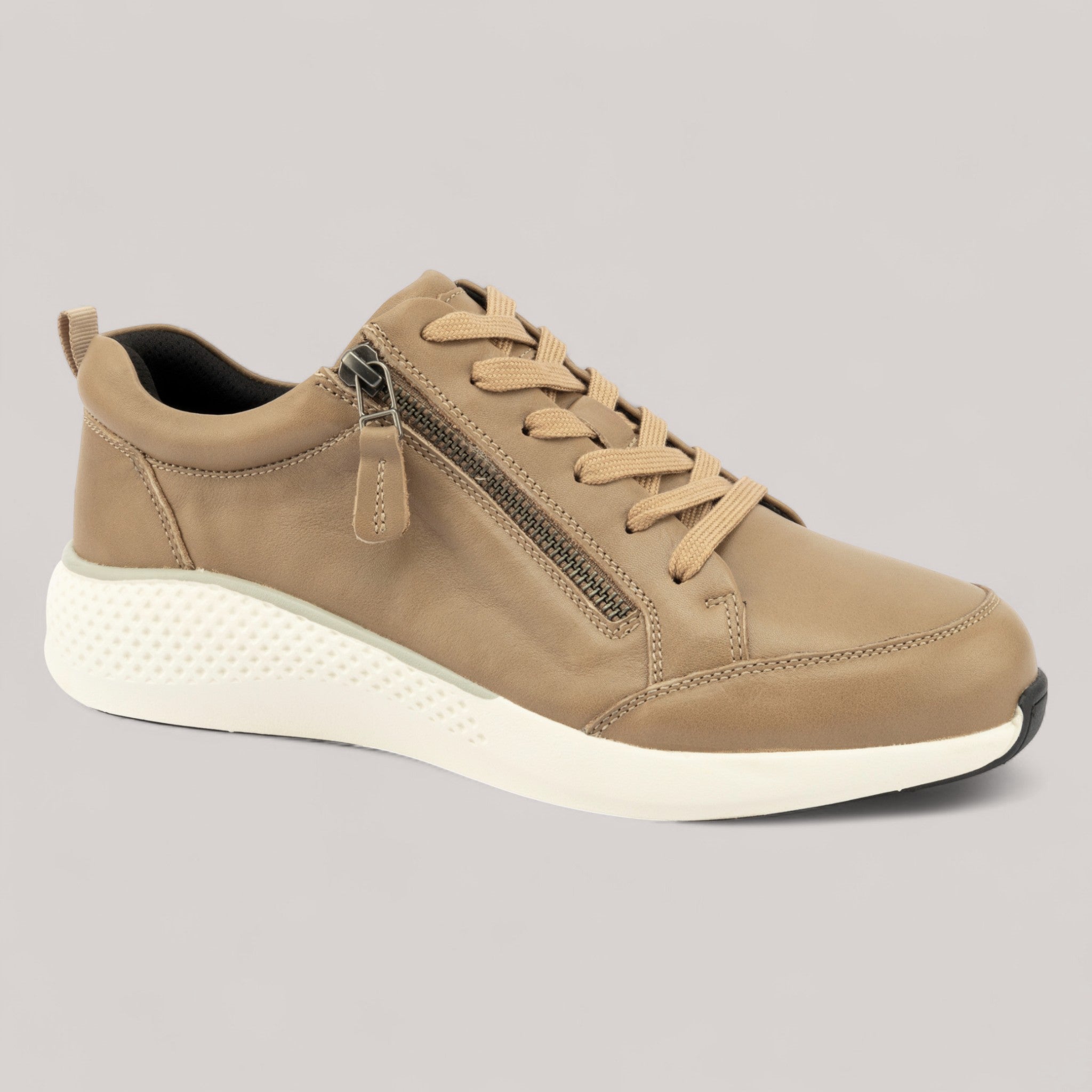 Introducing the KLOUDS - KELSEY leather sneaker, designed for comfort and style. The Signature Arch Comfort Zone Insole provides unparalleled support and cushioning for your feet. The zip-and-lace fastening allows for easy entry and customisable fit. The padded ankle collar and soft textile lining ensure a secure and gentle fit. The lightweight EVA foam outsole with rubber traction offers shock absorption and slip resistance, making every step a breeze.