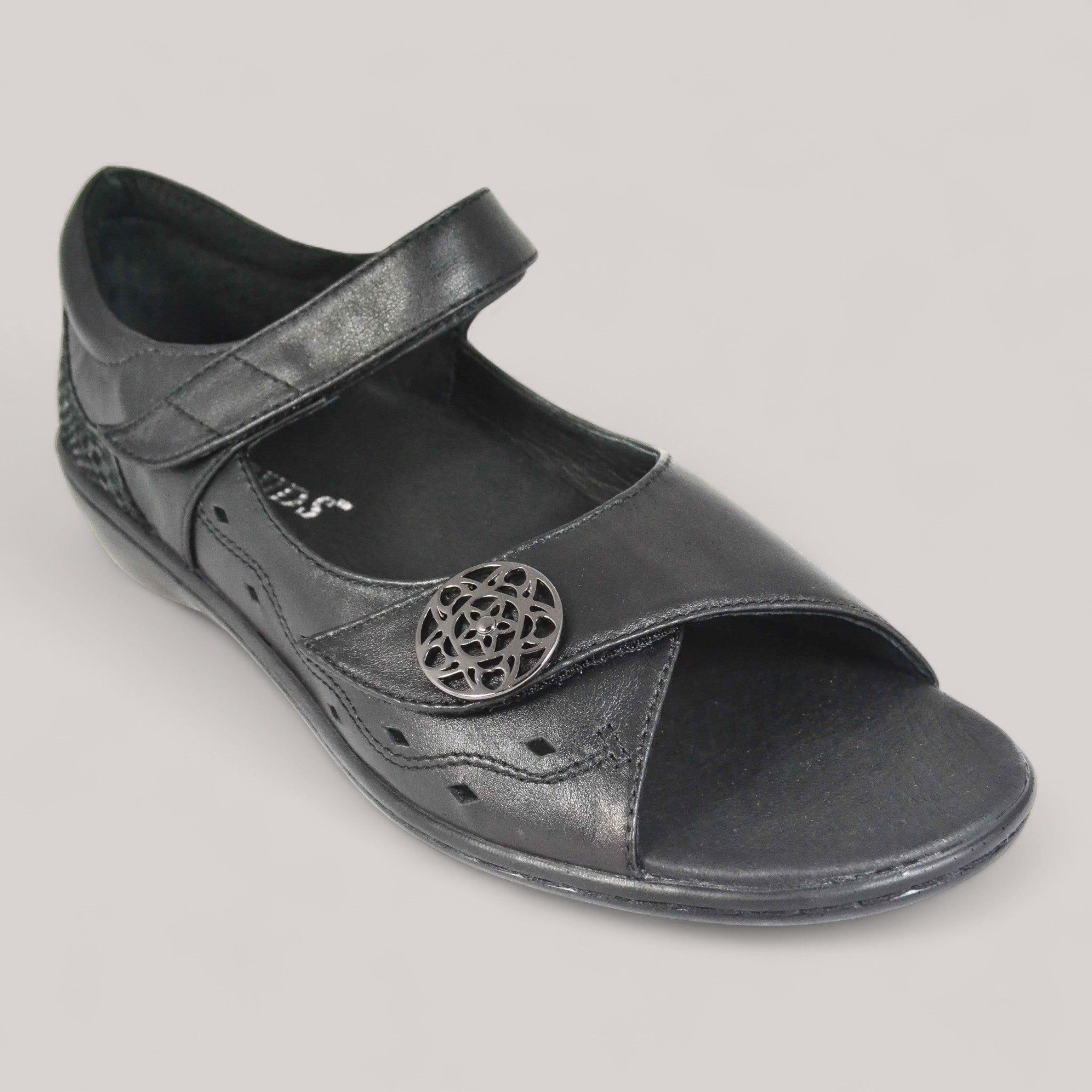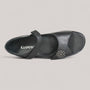 Leather upper for breathability with button accent for added interest. Slip on closure with two adjustable velcro straps for easy on-off wear. Leather lining for an abrasion-free environment for all-day wear. Removable leather-covered, cushioned insole for superior comfort. Cushioned midsole with velcro attachments for ease of personal orthotic use. Stabilising shank for extra support and stability. Lightweight cushioned PU sole for flexibility and traction on a variety of surfaces.