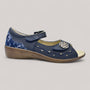 Leather upper for breathability with button accent for added interest. Slip on closure with two adjustable velcro straps for easy on-off wear. Leather lining for an abrasion-free environment for all-day wear. Removable leather-covered, cushioned insole for superior comfort. Cushioned midsole with velcro attachments for ease of personal orthotic use. Stabilising shank for extra support and stability. Lightweight cushioned PU sole for flexibility and traction on a variety of surfaces.