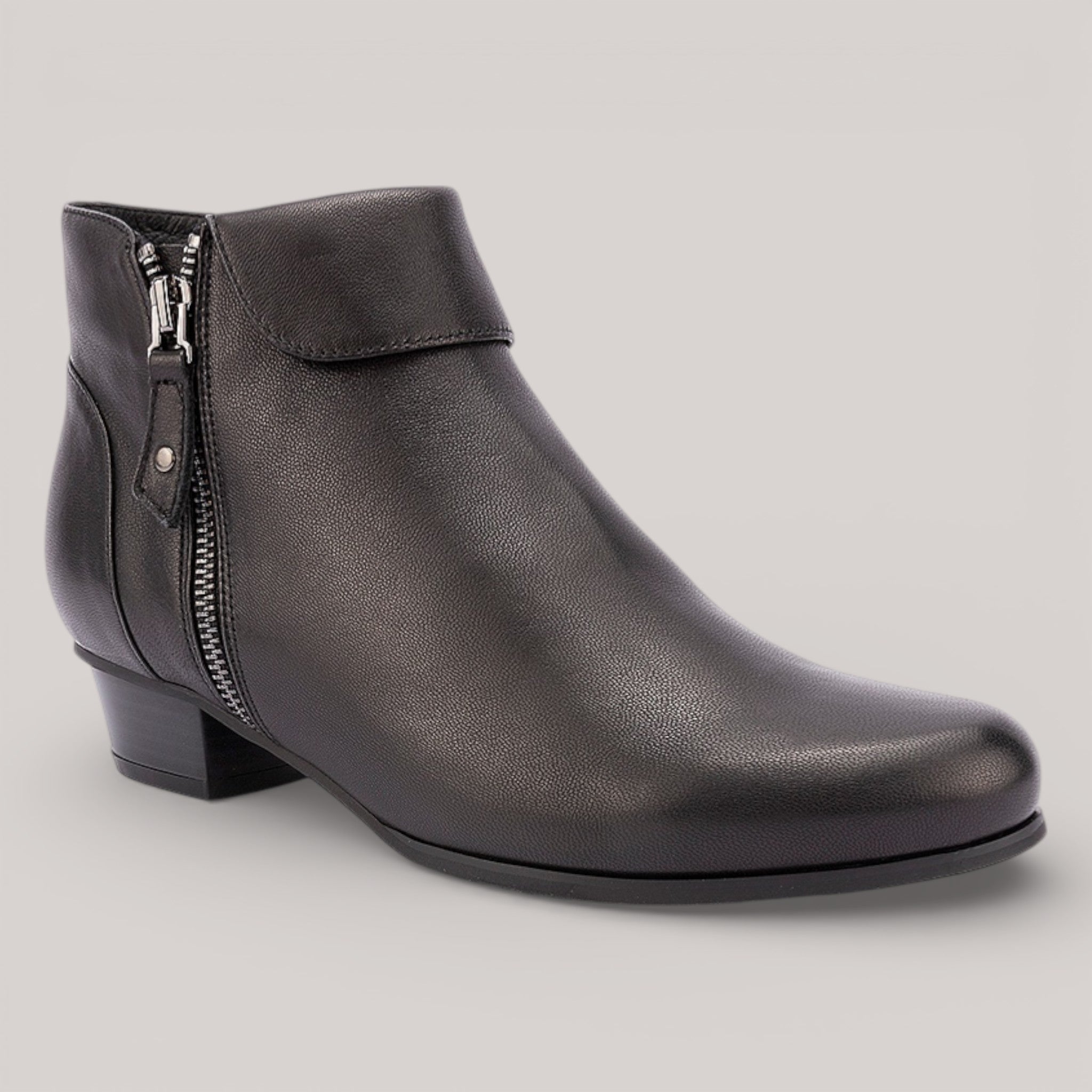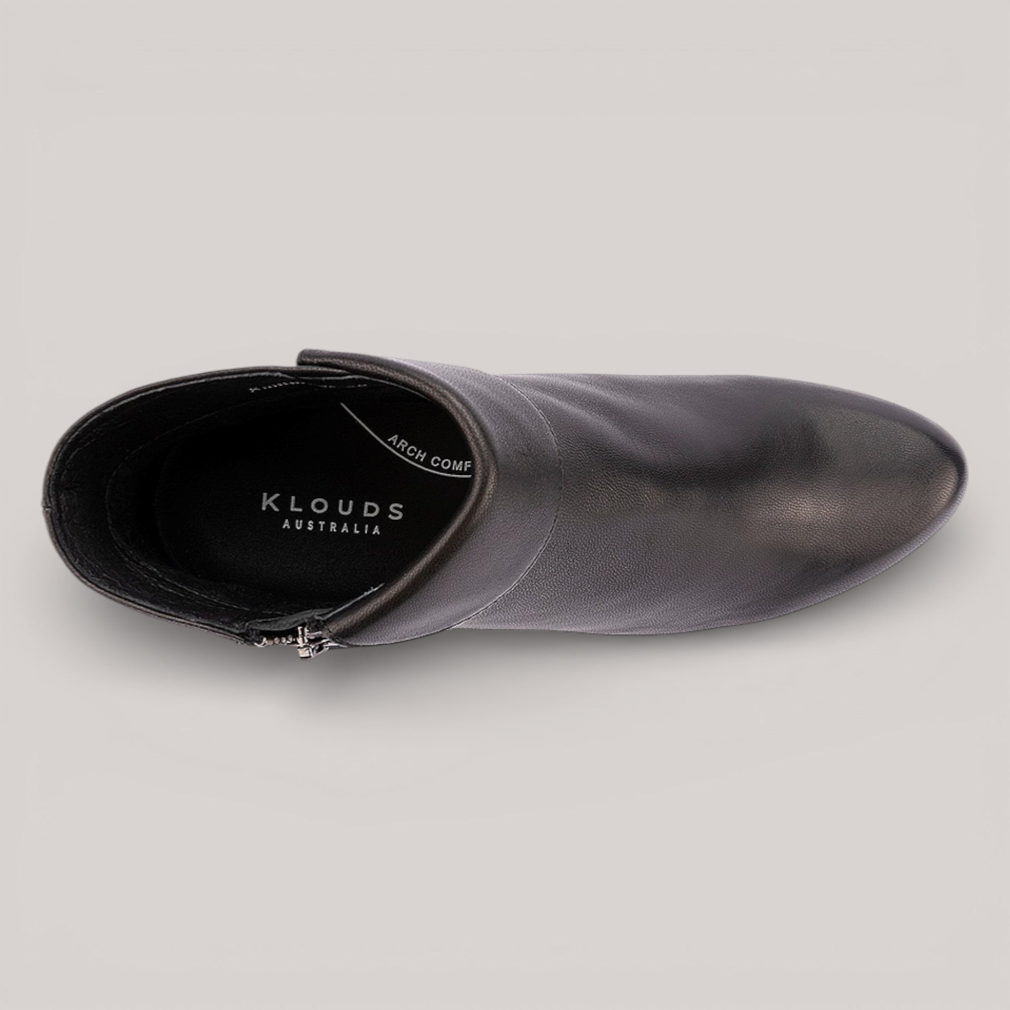 Klouds Xanthippe combines orthotic-friendly support with effortless style. The raised arch reduces foot fatigue while heel-to-toe cushioning keeps you comfortable all day. Ultra-soft leather upper and textile lining provide gentle warmth, while the functional side zip ensures easy on-and-off wear. Lightweight, shock-absorbing rubber sole delivers responsive comfort with every step.