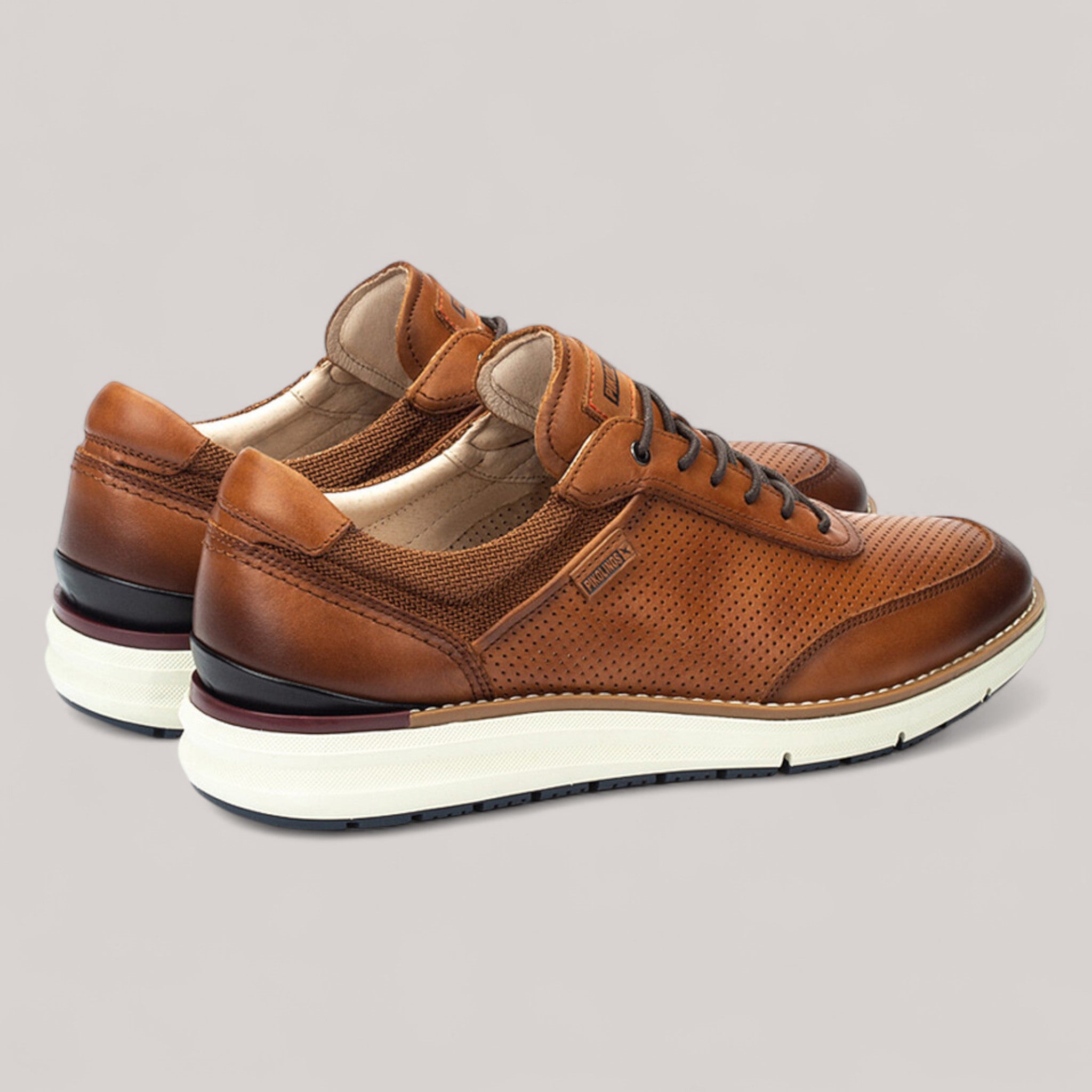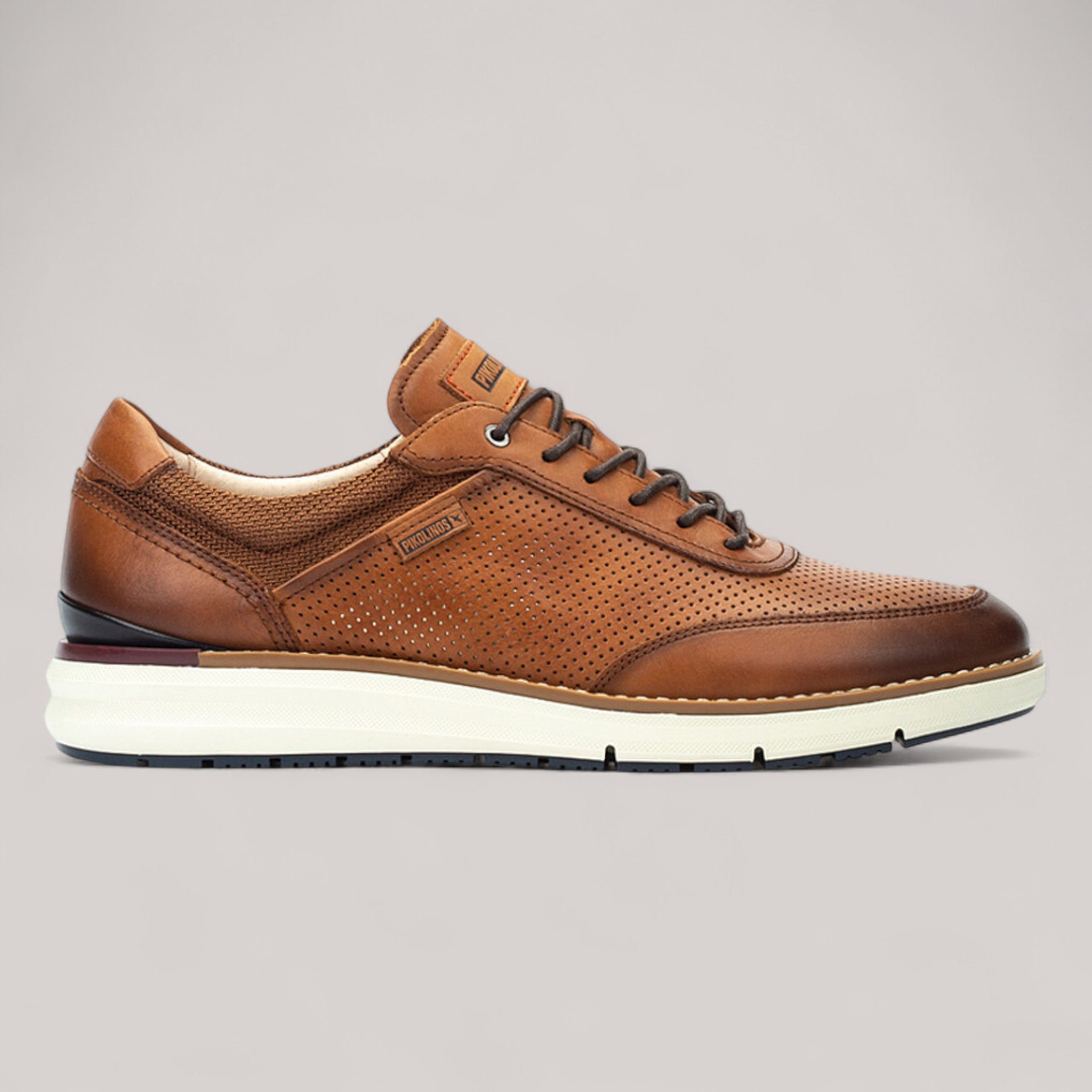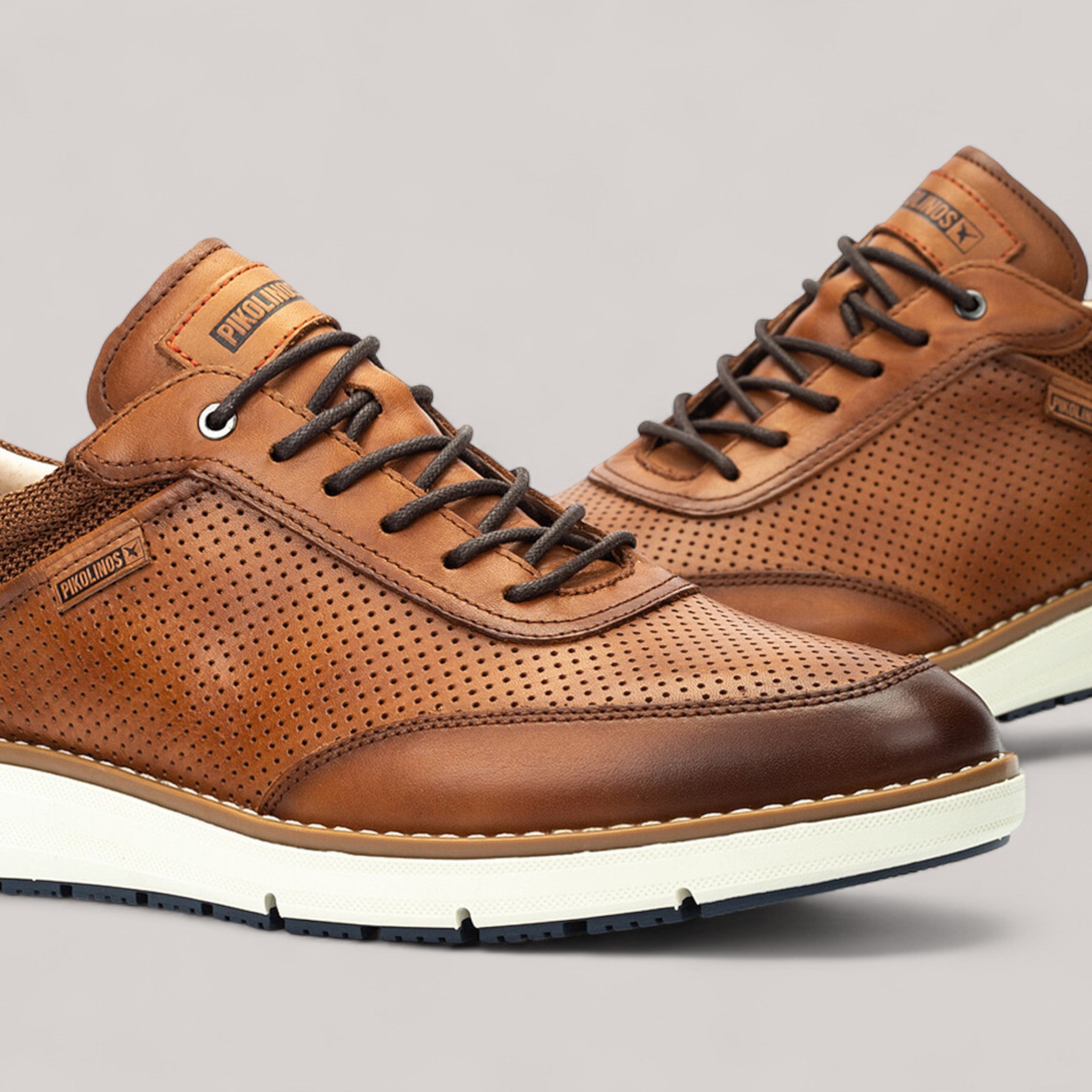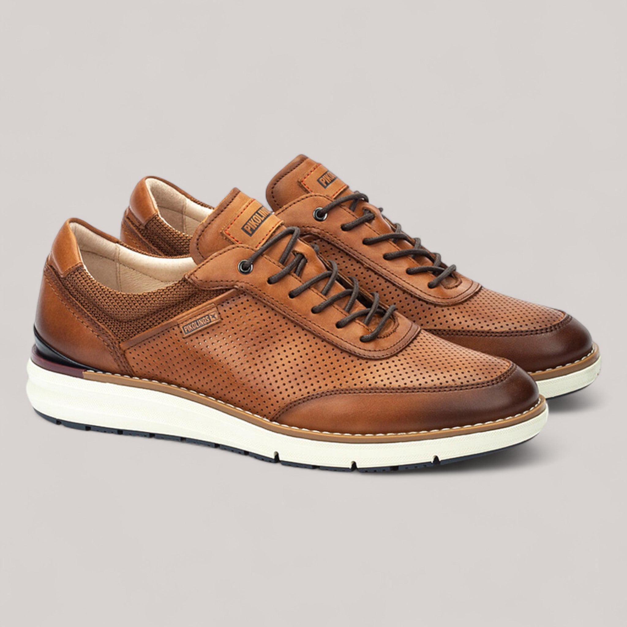 Step into summer with the Manacor men’s sneakers from Pikolinos. Designed for sporty style and all-day comfort, these shoes feature a removable insole and an extra-comfort sole to keep you moving effortlessly. Crafted from naturally treated premium leathers combined with breathable textiles, they offer both quality and durability. Lace-up closure ensures a secure fit, while the 3.6 cm sole adds subtle height. Shine with confidence and style wherever your day takes you!
