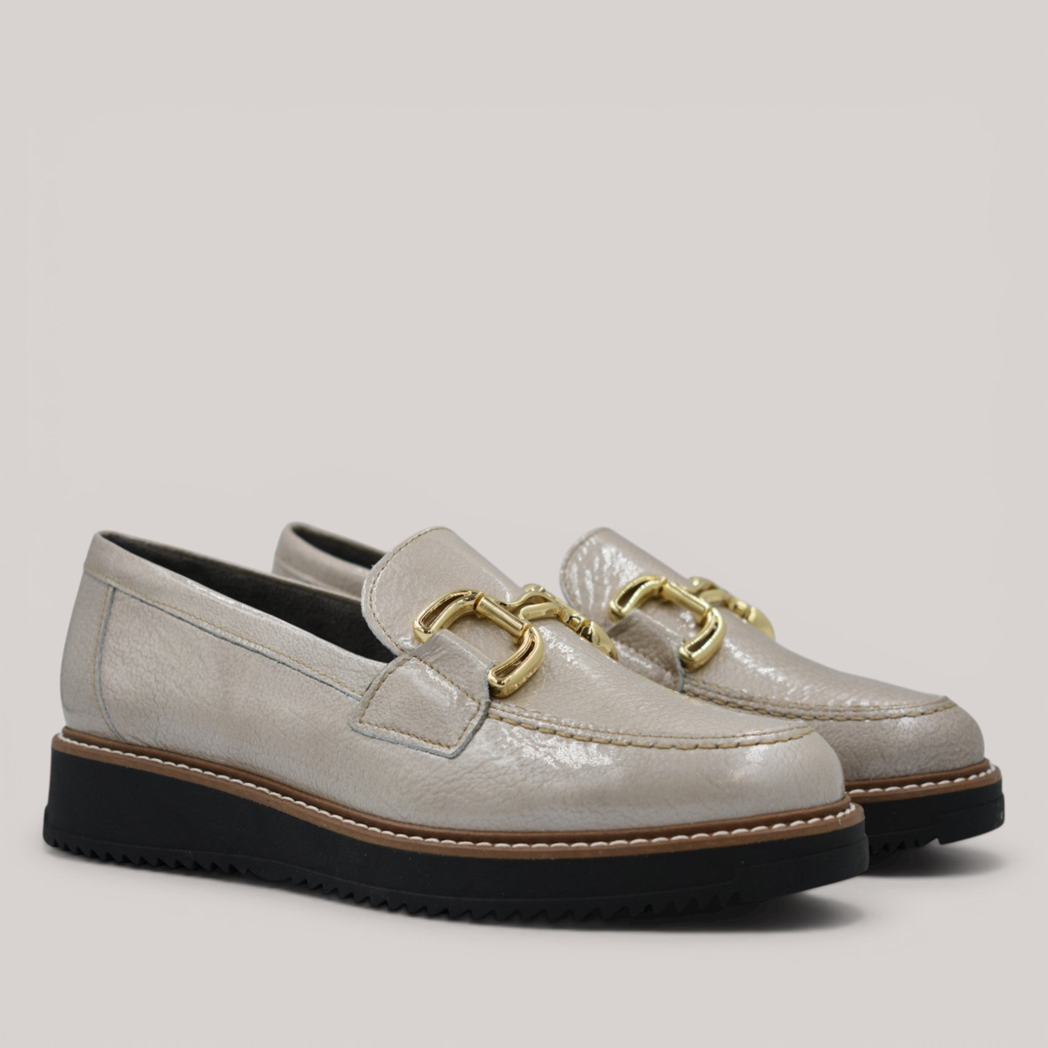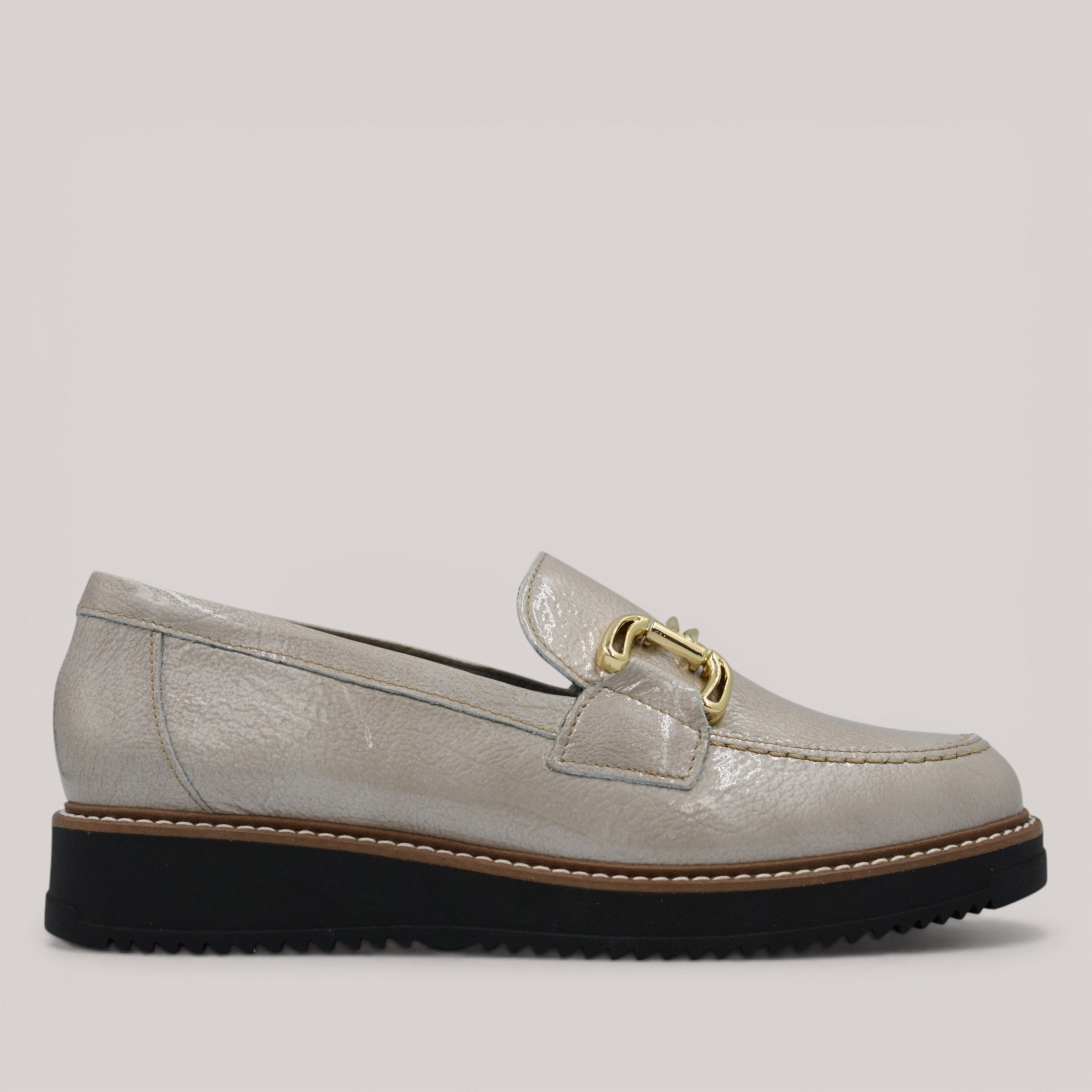Refined patent leather loafer featuring polished buckle accents and a cushioned synthetic sole. Built with orthotic compatibility to welcome custom arch supports, this shoe delivers refined elegance without compromising on comfort. Equally suited to professional settings or casual occasions, it's a timeless addition to any footwear collection.