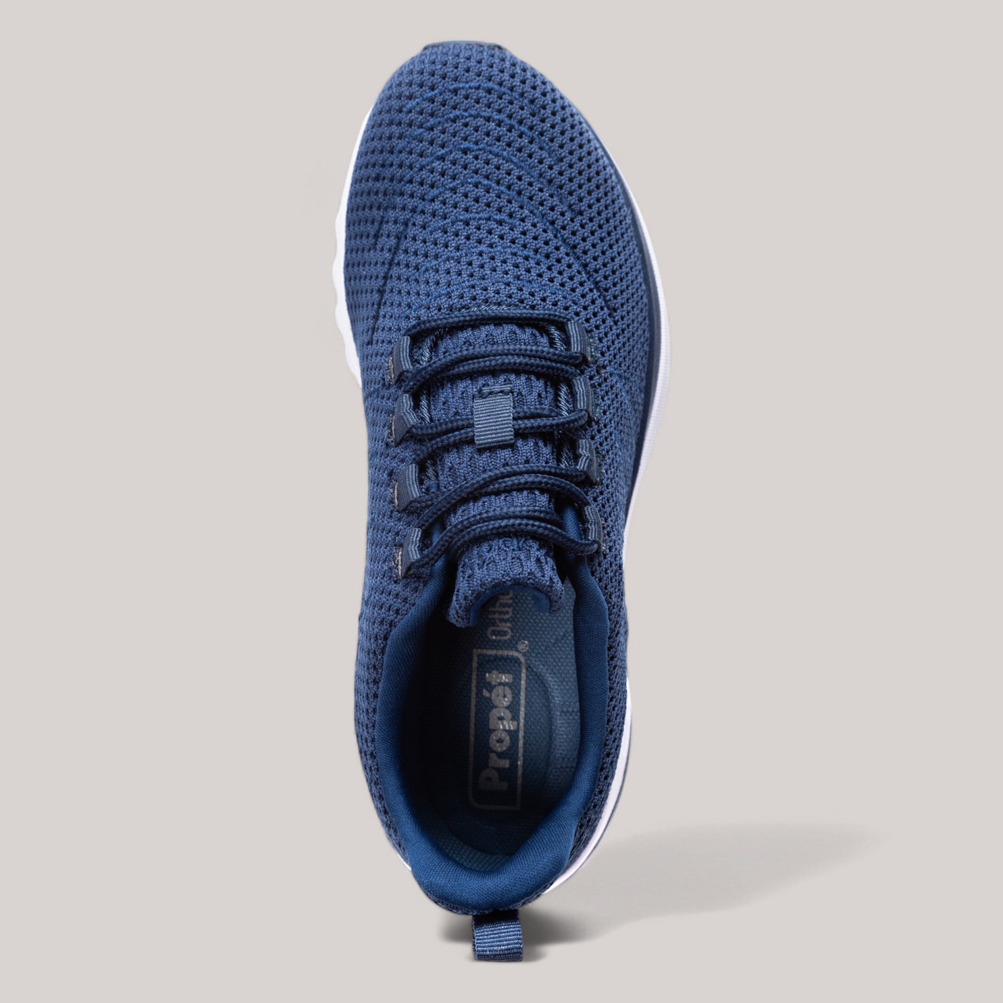 This mesh sneaker from Propet delivers breathable comfort and performance with a precision-knit upper, padded collar, and lining for a secure fit. X25™ Open Cell foam provides superior cushioning in thin layers, ideal for high-impact activities, while an EVA spacer allows for a customized fit. A lightweight EVA midsole with rubber tread inserts ensures grip and traction on any surface, complemented by a 10mm heel-to-toe drop for reduced Achilles strain and smooth transitions. Featuring Ortholite foam insoles for long-term cushioning and breathability, this orthotic-friendly sneaker is washable and designed in a D width for everyday versatility.