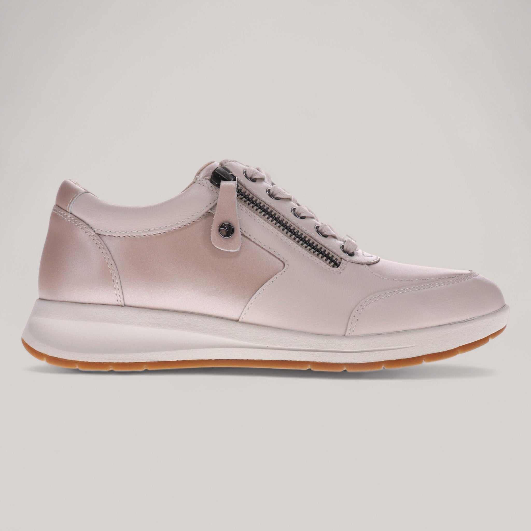 Leather upper for breathability with metallic finish. Leather lining for an abrasion free environment and all day wear. Side zip and adjustable laces for a secure, personalised fit. Revere metal branding for luxe detail. Removable, padded insoles for superior comfort. Slip resistant sole for durability and traction on a variety of surfaces.