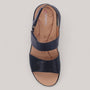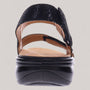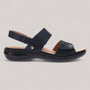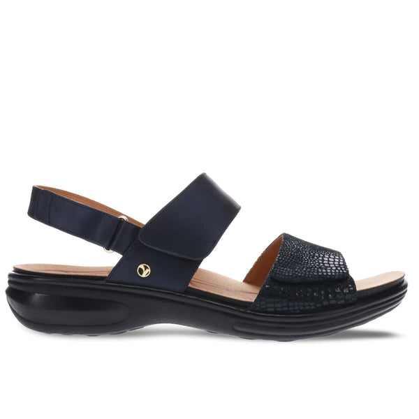 Hand crafted leather upper for breathability with patterned strap design for added interest. Slip on closure with three adjustable velcro straps for easy on-off wear with velcro extenders for a personalised fit. Leather lining for an abrasion-free environment for all-day wear. Removable PU micro fibre covered insole with cushioned heel for extra comfort and shock absorption. Additional depth in unit to accommodate custom orthotics with lightweight midsole construction for superior comfort. Slip resistant synthetic sole for flexibility and traction on a variety of surfaces.