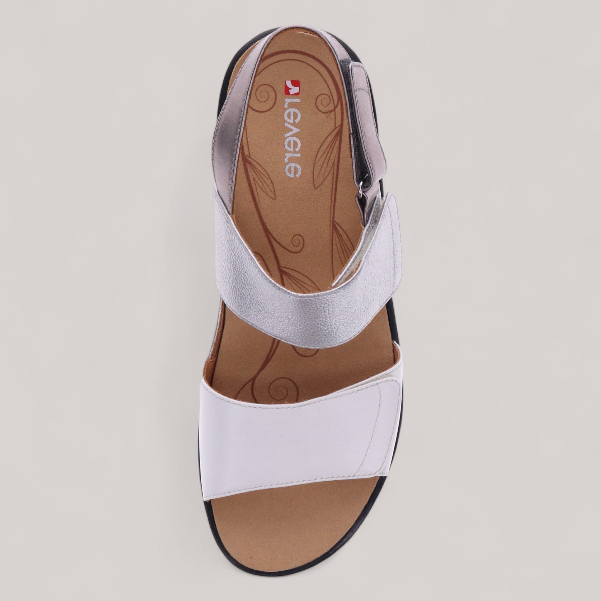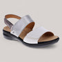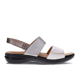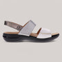 Hand crafted leather upper for breathability with patterned strap design for added interest. Slip on closure with three adjustable velcro straps for easy on-off wear with velcro extenders for a personalised fit. Leather lining for an abrasion-free environment for all-day wear. Removable PU micro fibre covered insole with cushioned heel for extra comfort and shock absorption. Additional depth in unit to accommodate custom orthotics with lightweight midsole construction for superior comfort. Slip resistant synthetic sole for flexibility and traction on a variety of surfaces.