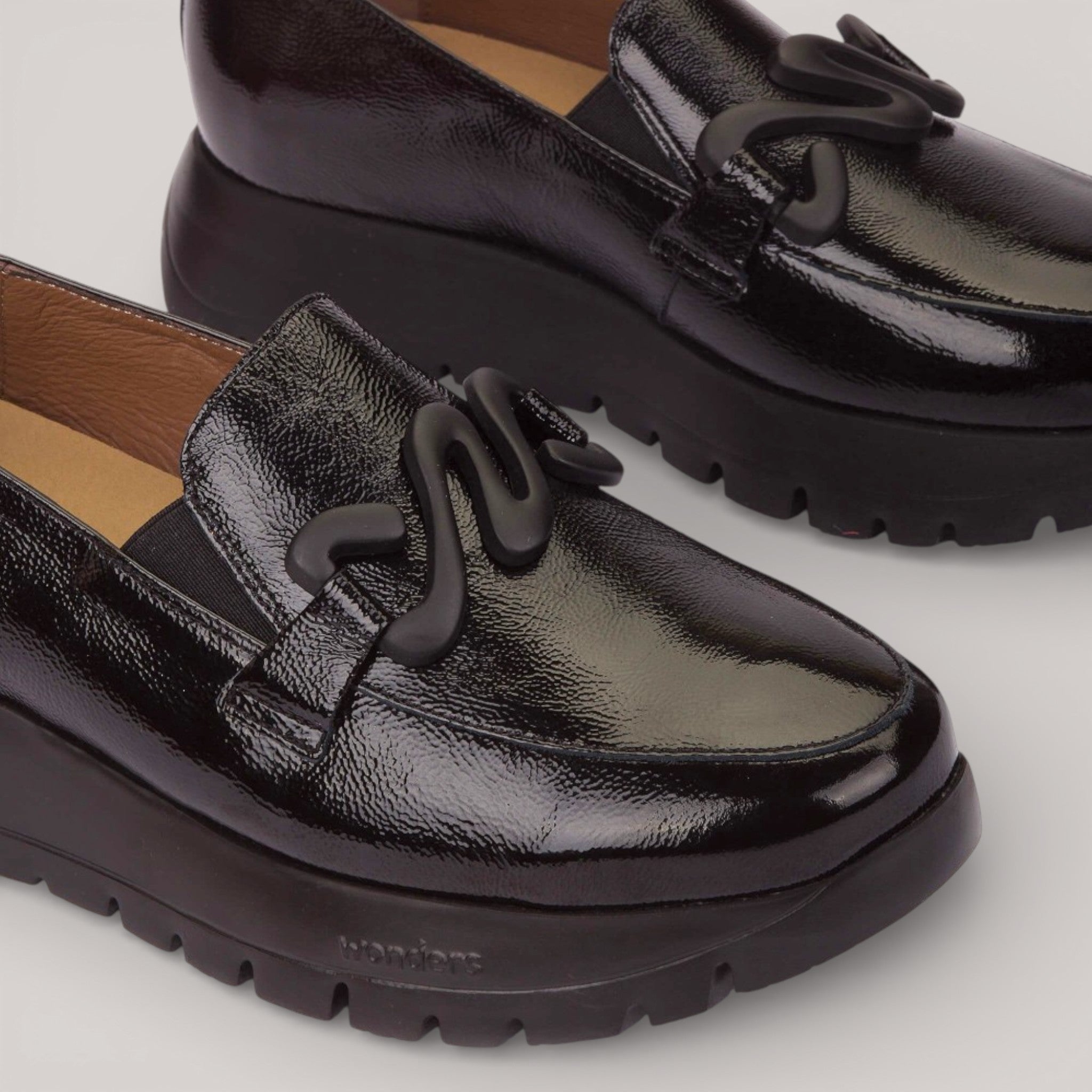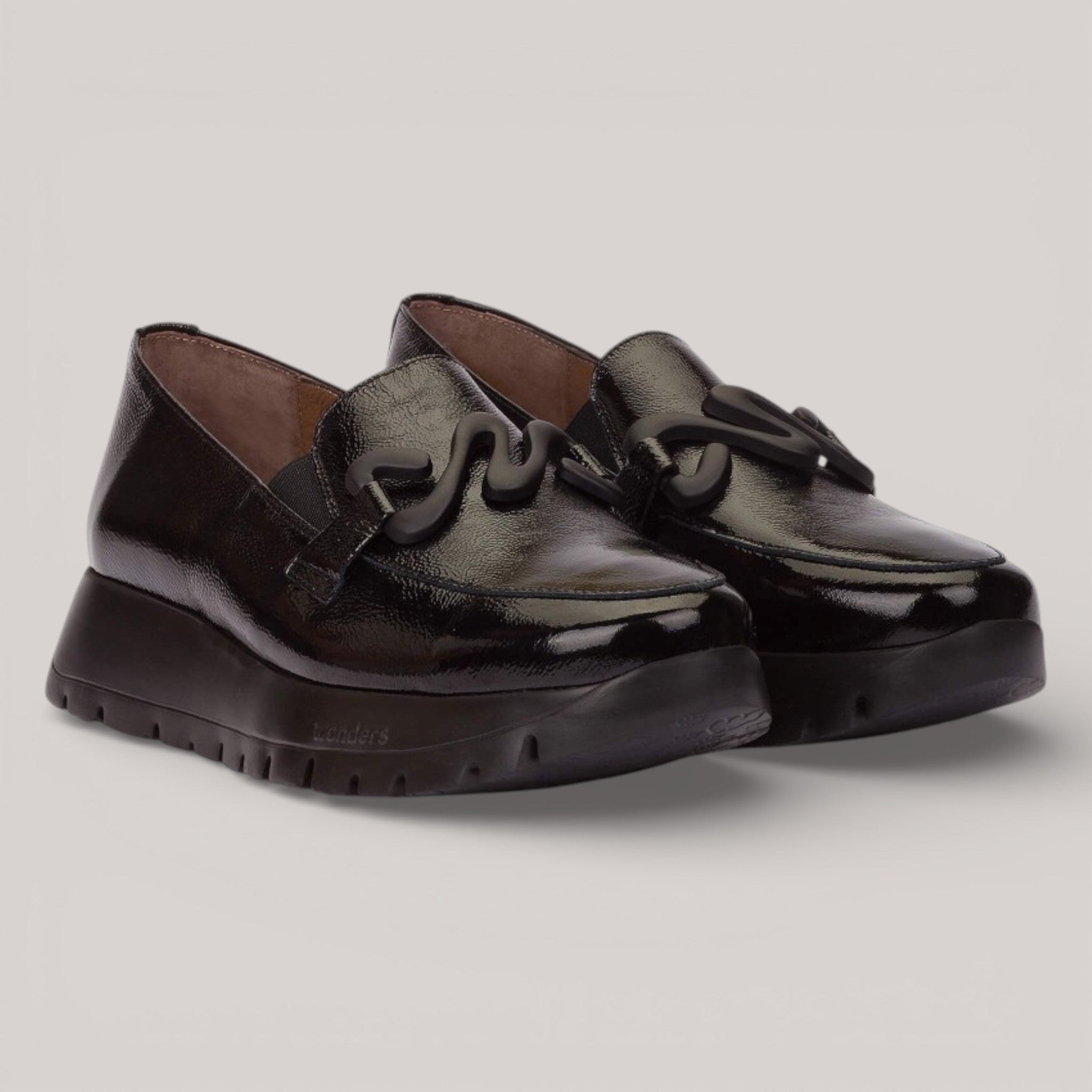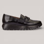 Crafted in lustrous black leather, this penny loafer channels timeless elegance with a refined decorative buckle. The innovative WondersFly™ sole delivers remarkable lightness without compromising support, while the removable MemoryGel insole moulds to your foot's contours for sustained comfort throughout the day. A sophisticated choice for those who value both style and wearability.