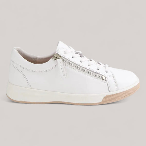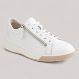 Crafted from high-quality leather, these women’s casual sneakers are designed to deliver superior stability and comfort. The removable Super Support footbed provides targeted high arch support, while the wider heel and deeper stabilising fit promote balance with every step. Ideal for those needing extra width, this style includes adjustable forefoot inserts for a more personalised fit. Finished with a lace-up front and functional side zip for easy on-off, it’s the perfect blend of podiatrist-level support and everyday practicality.