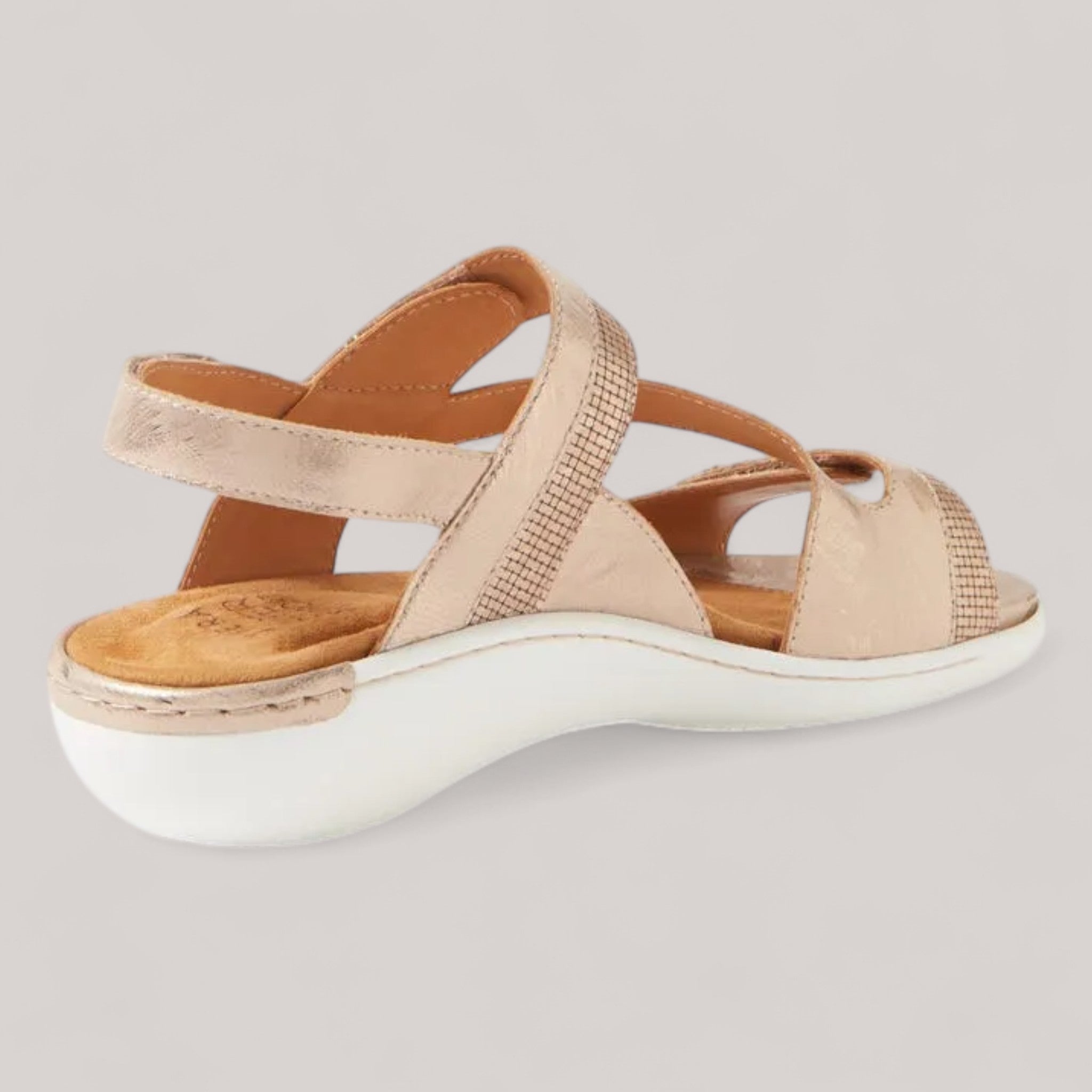 Step into all-day comfort with effortless elegance. Crafted from premium leather, these women’s sandals are designed to support your every move. The removable Super Support footbed offers exceptional high arch support, while the wide, stabilising heel ensures a secure and balanced fit. Ideal for those seeking a roomier feel, this style features a standard width with a deeper heel cradle perfect for everyday wear. Finished with a slip-resistant sole, it’s the perfect blend of style, stability, and superior comfort.